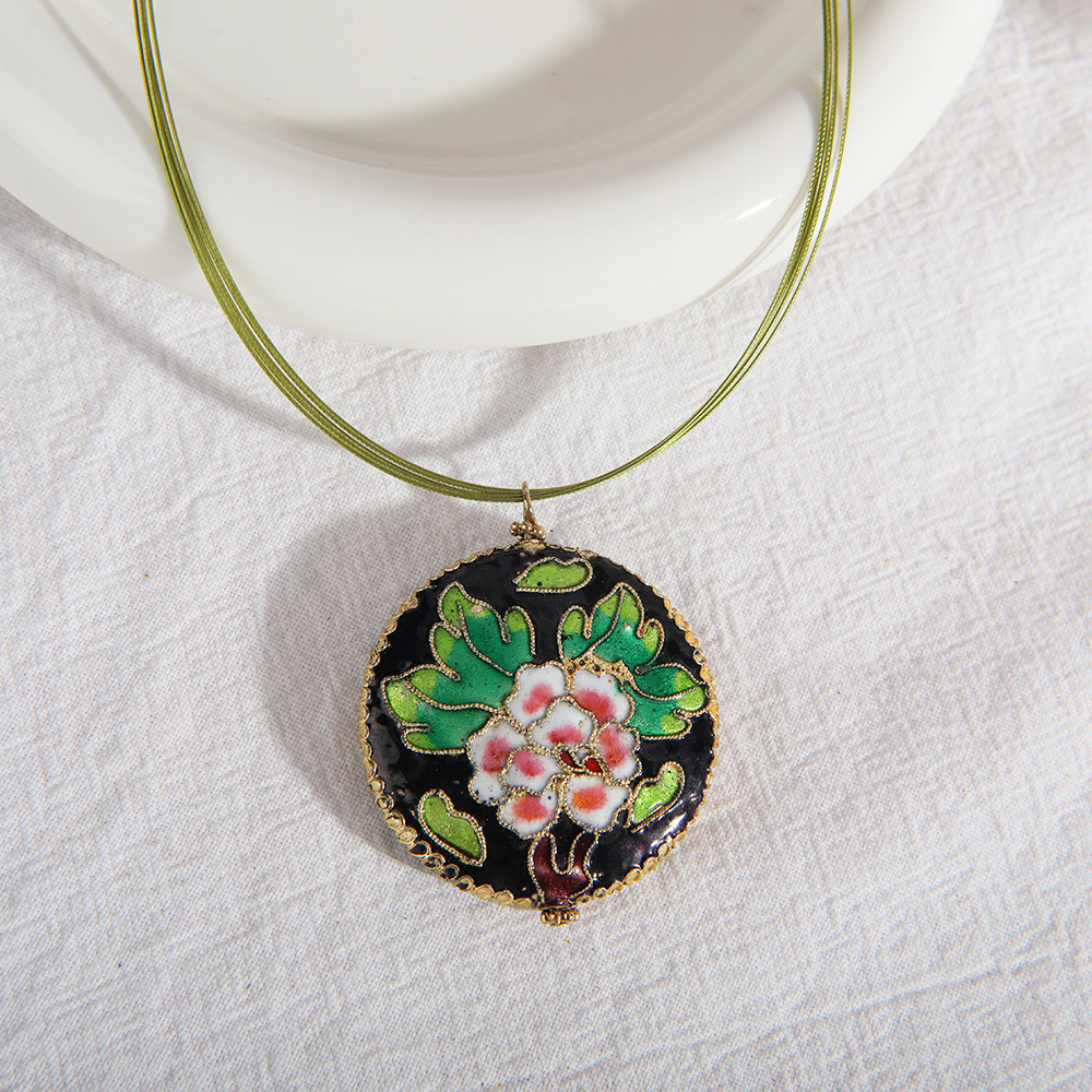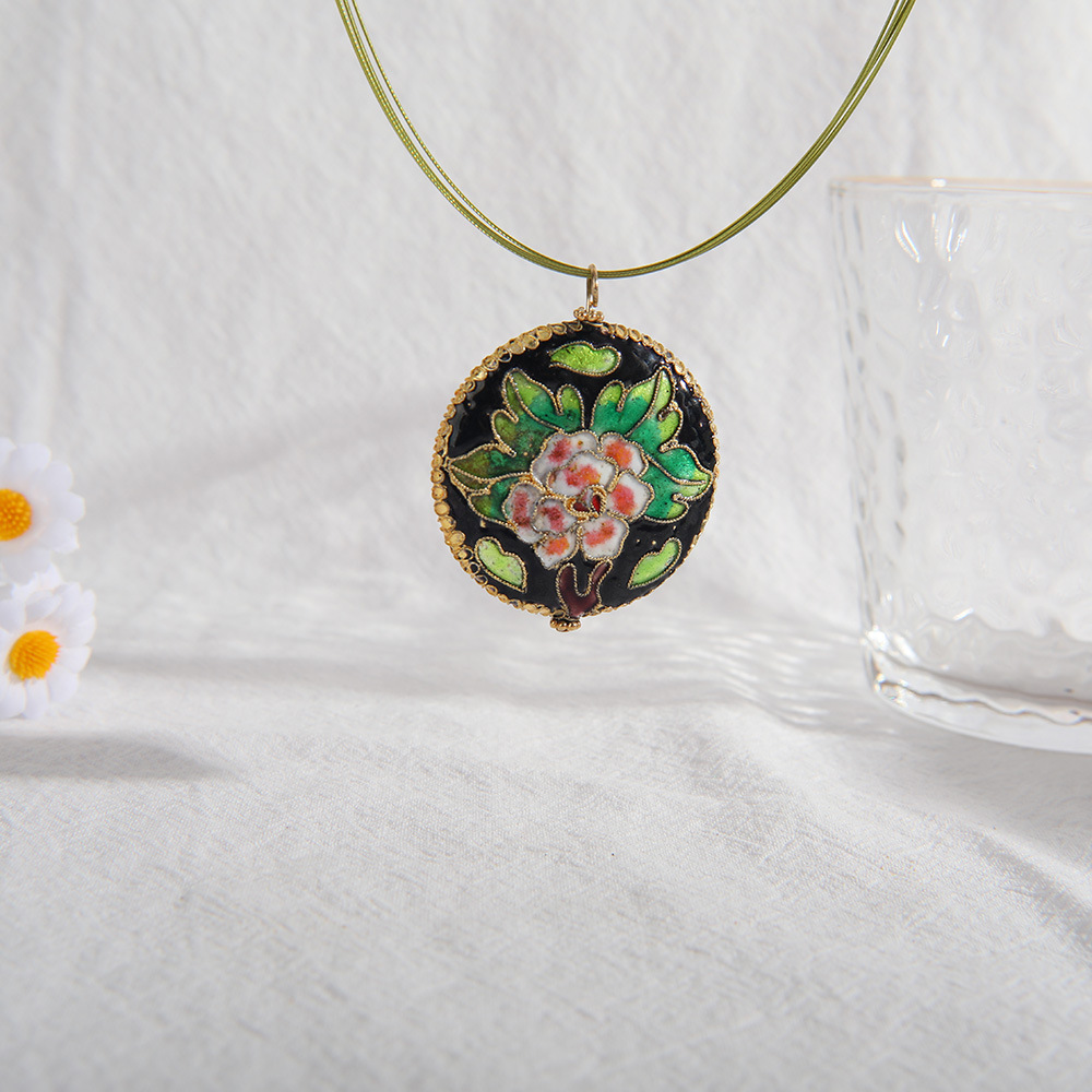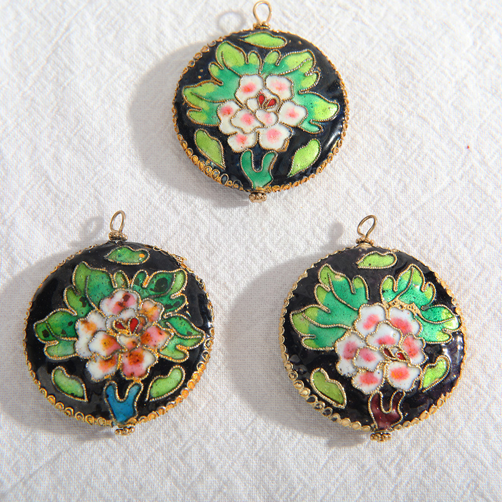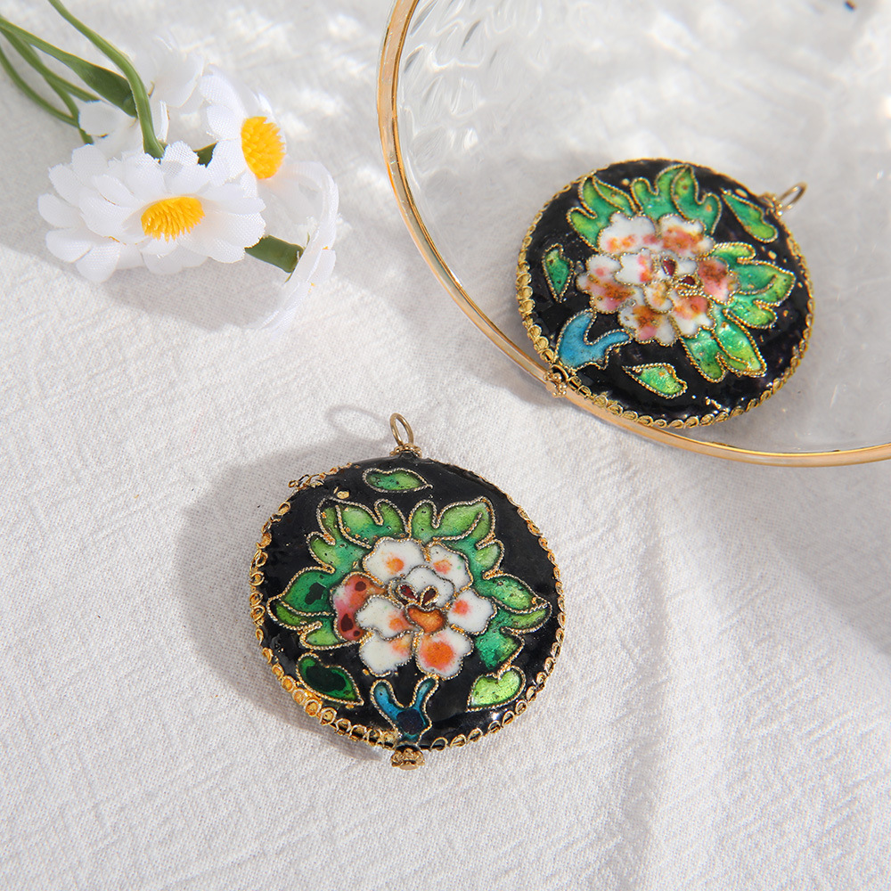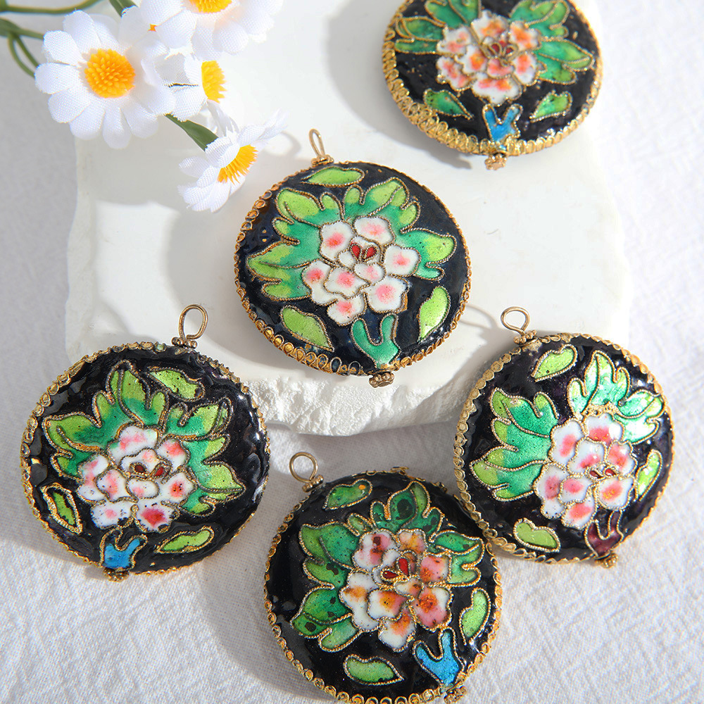 Cloisonne Vedhæng, Runde, du kan DIY & emalje, grøn, 40mm, Solgt af PC