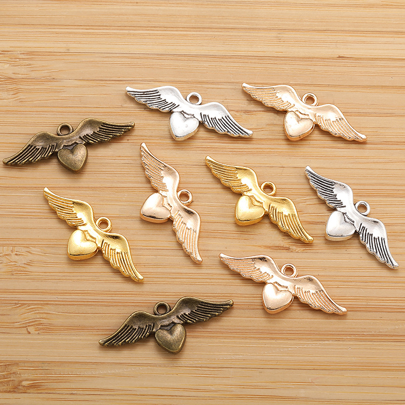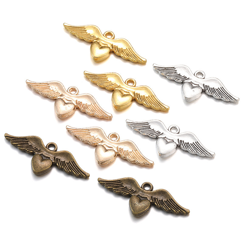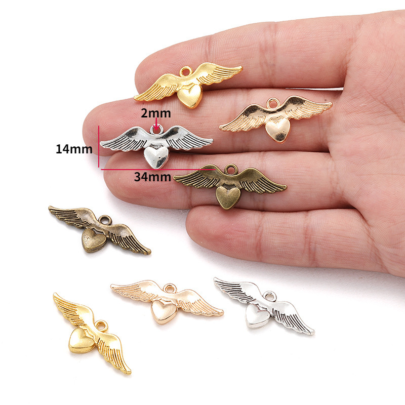 Zinc Alloy Heart Pendler, Wing Shape, forgyldt, du kan DIY, flere farver til valg, nikkel, bly & cadmium fri, 34x14mm, Solgt af Bag