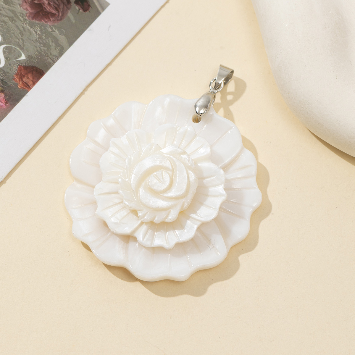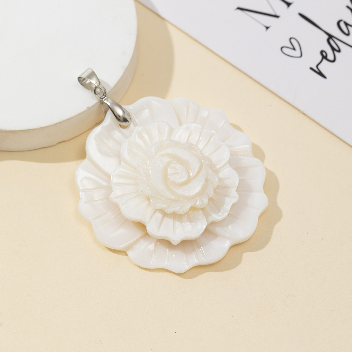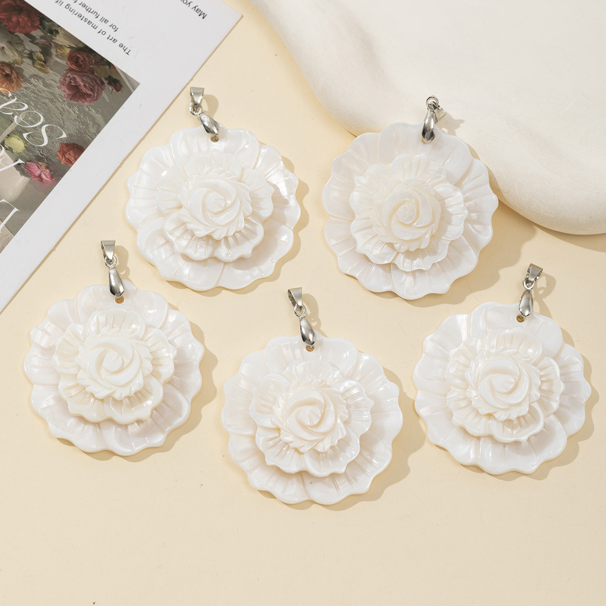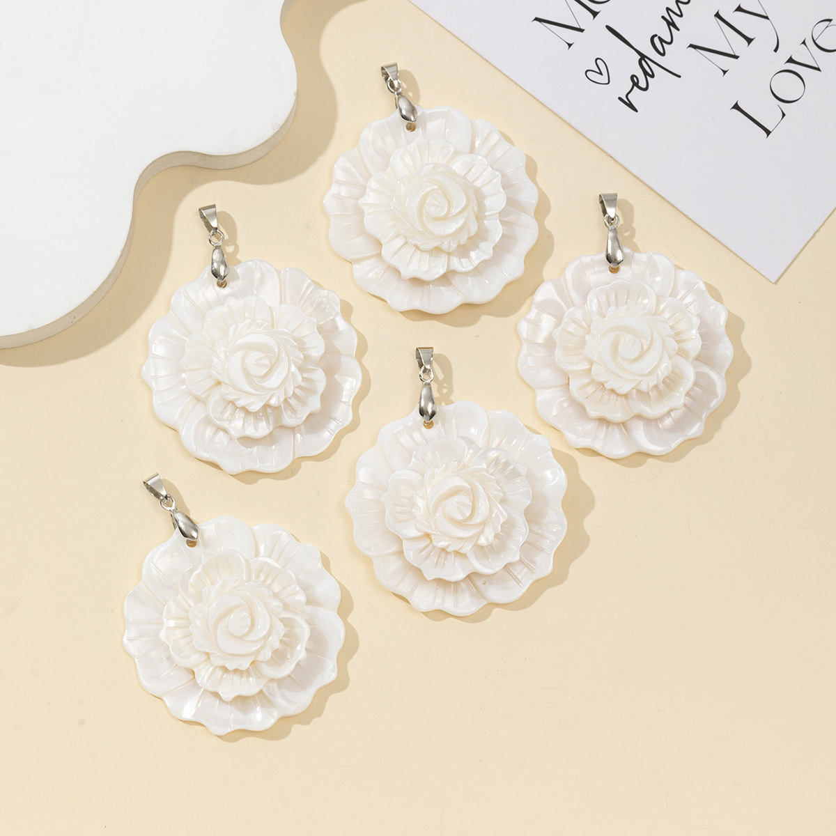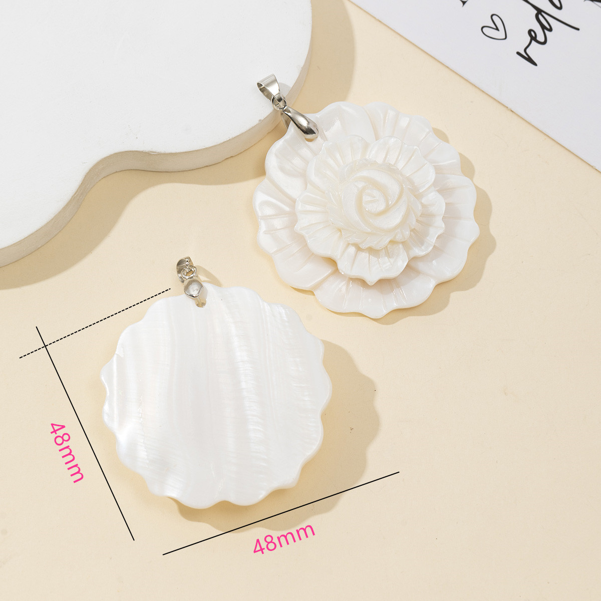 Shell Pendler, Flower, du kan DIY, hvid, 48x48mm, Solgt af PC