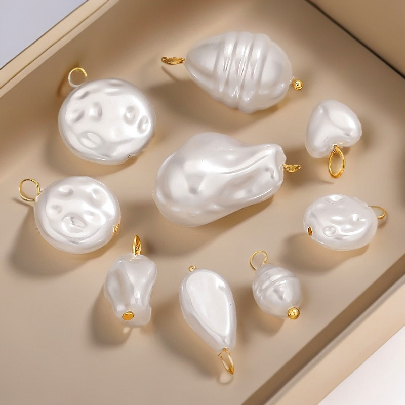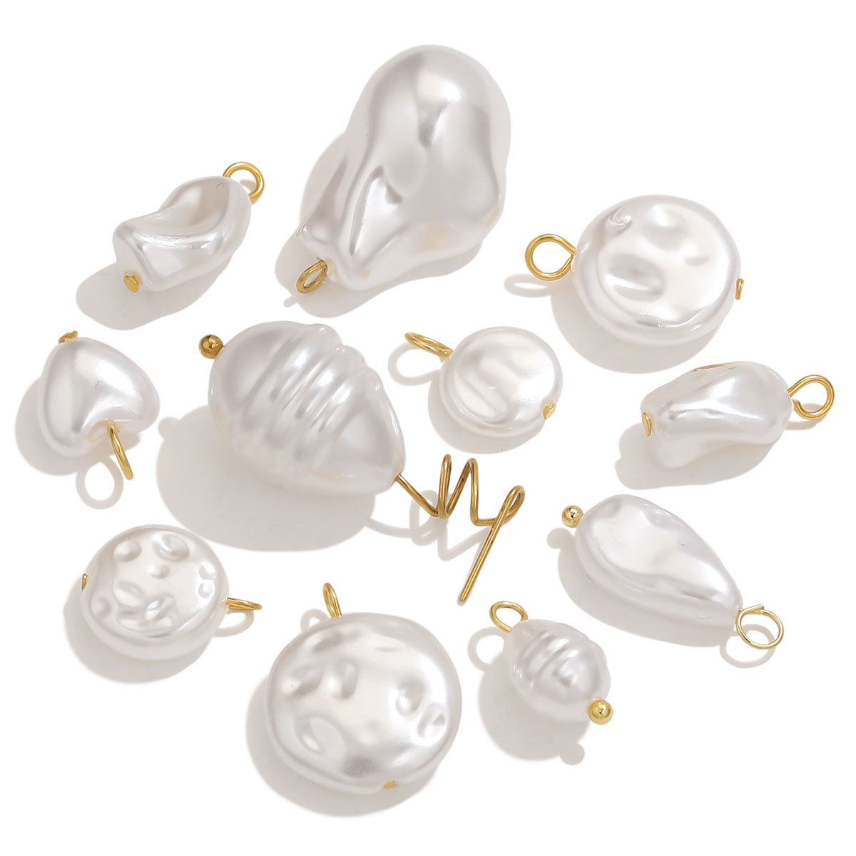 Plastic Vedhæng, 304 rustfrit stål, med Plastic Pearl, forgyldt, du kan DIY & forskellige stilarter for valg, hvid, 20pc'er/Bag, Solgt af Bag