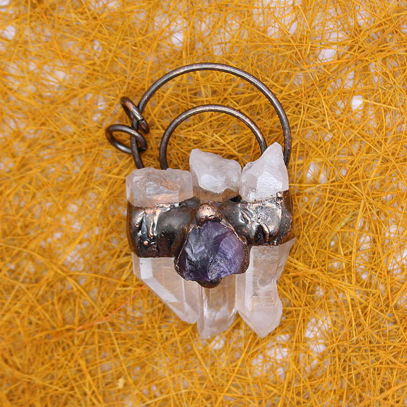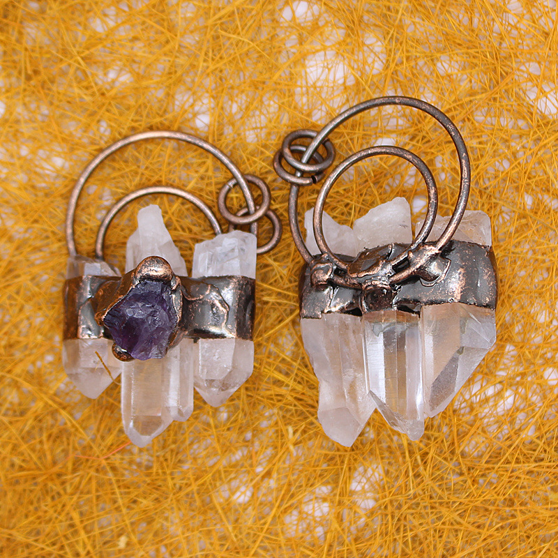Naturlig Quartz Vedhæng, Clear Quartz, med Ametyst & Messing, forgyldt, du kan DIY, nikkel, bly & cadmium fri, 55x33x18mm, Solgt af PC