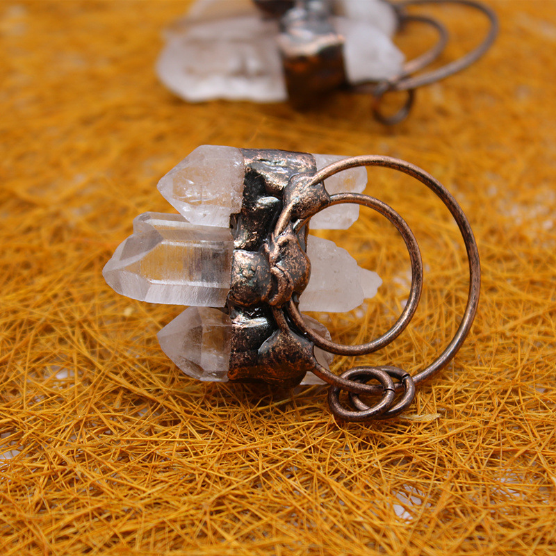 Naturlig Quartz Vedhæng, Clear Quartz, med PU & Rainbow Quartz, Uregelmæssig, du kan DIY, flerfarvede, Solgt af PC