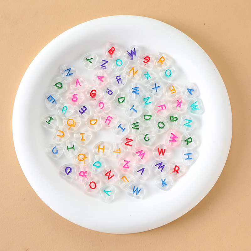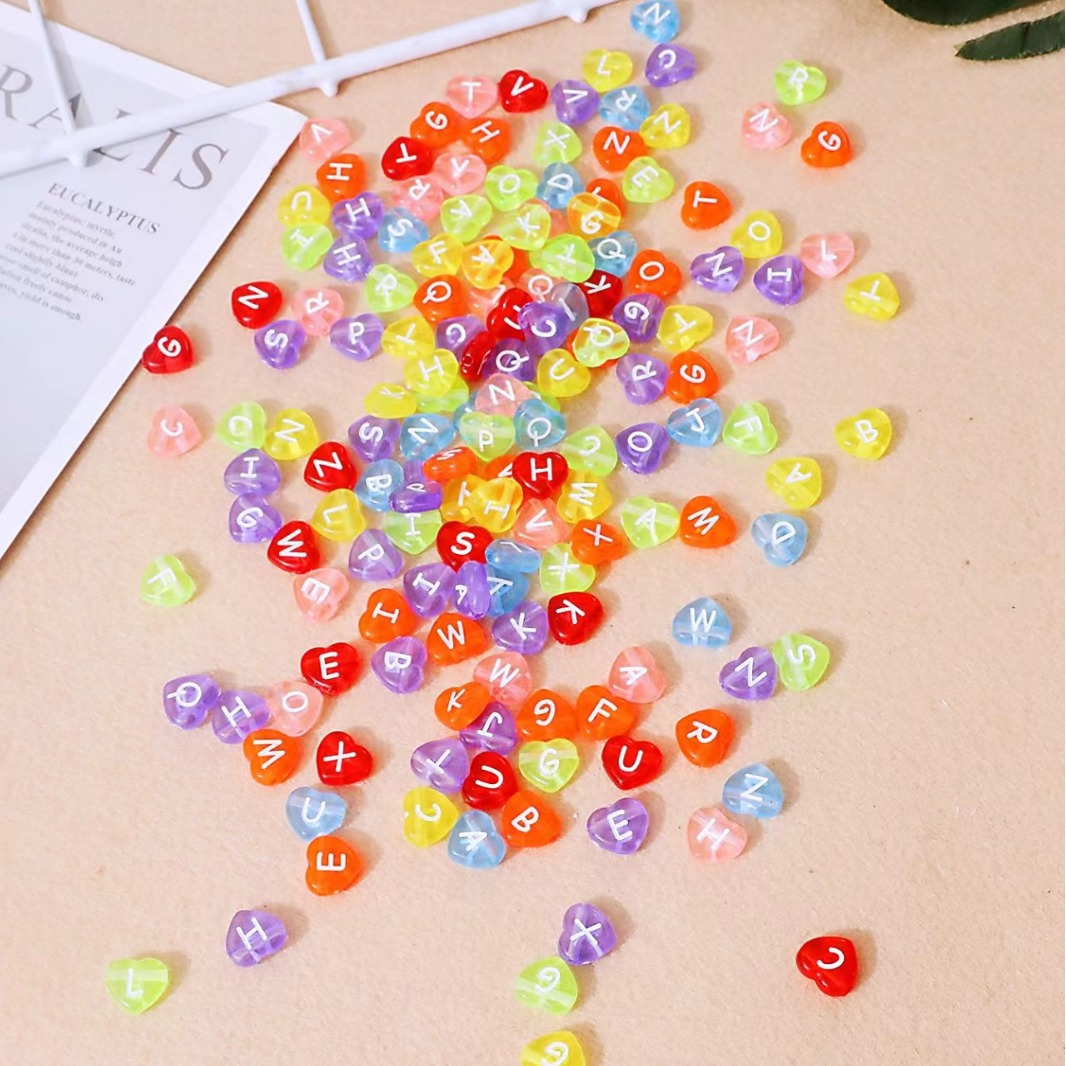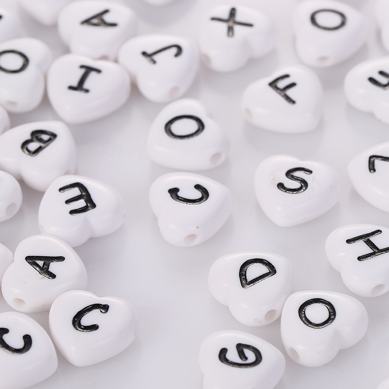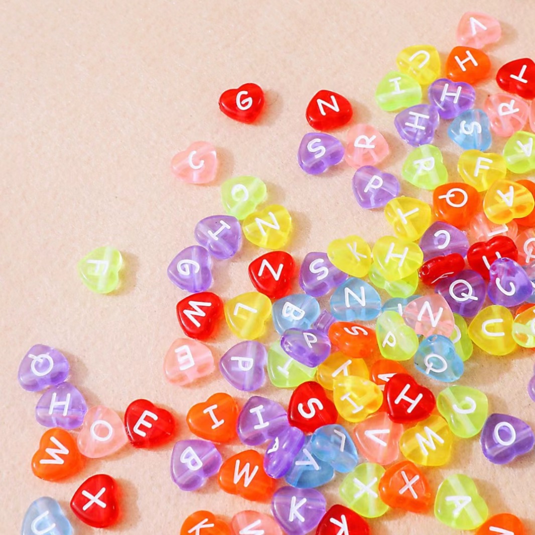 Alfabet Akryl perler, Heart, du kan DIY & emalje, flere farver til valg, 4x11mm, Ca. 500G/Bag, Solgt af Bag