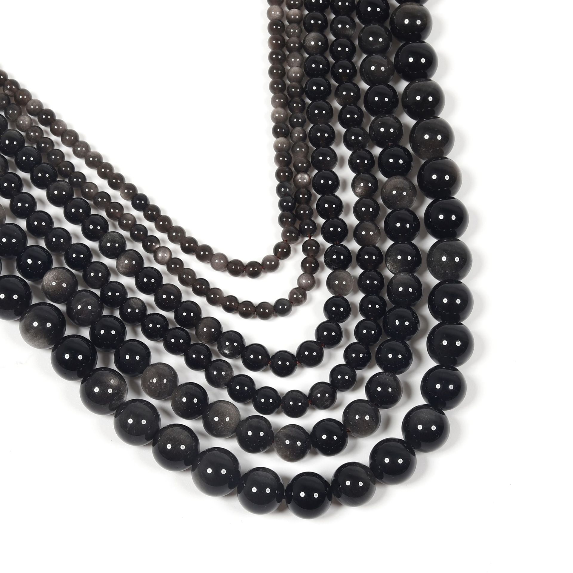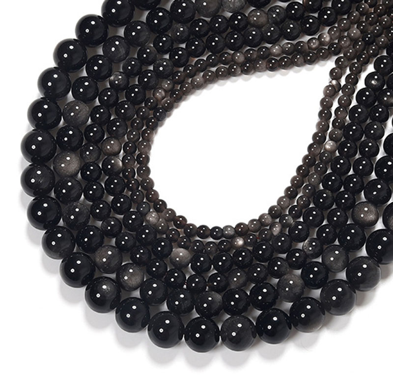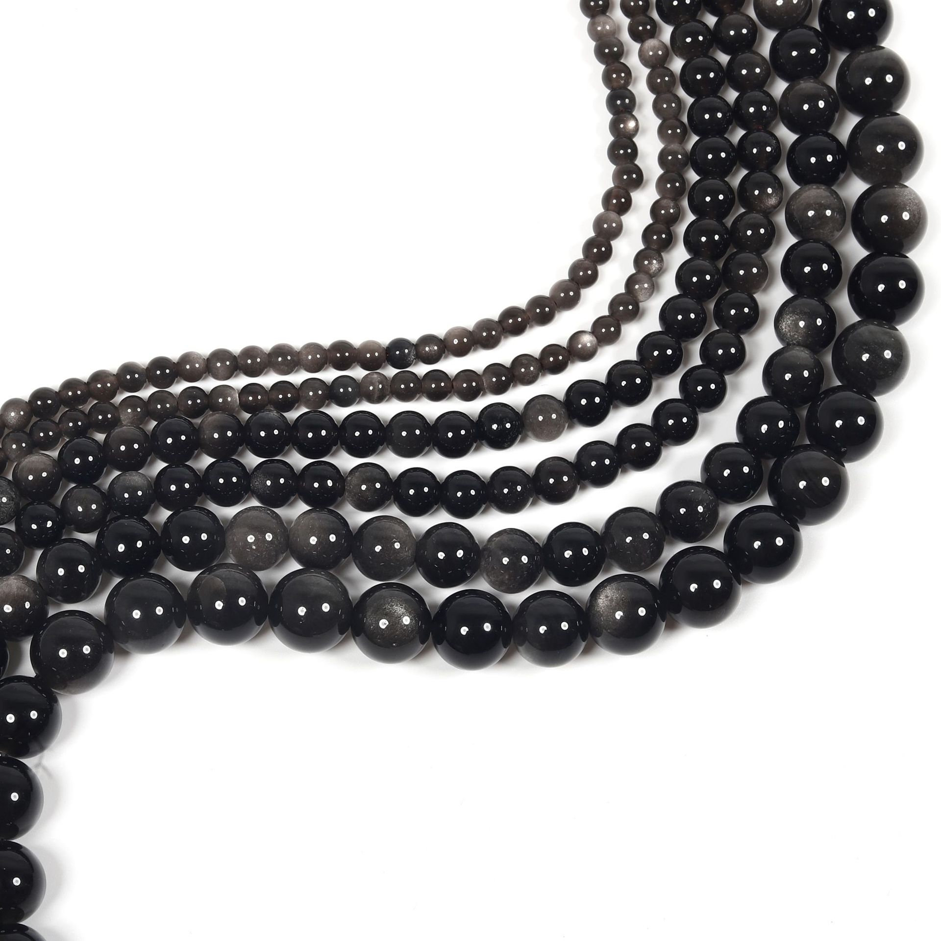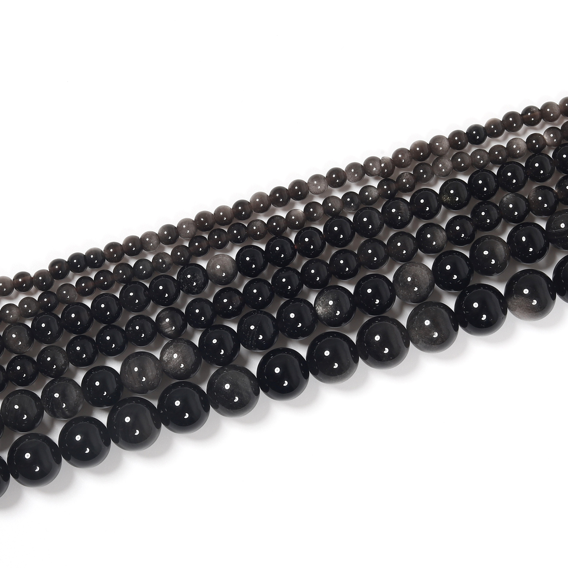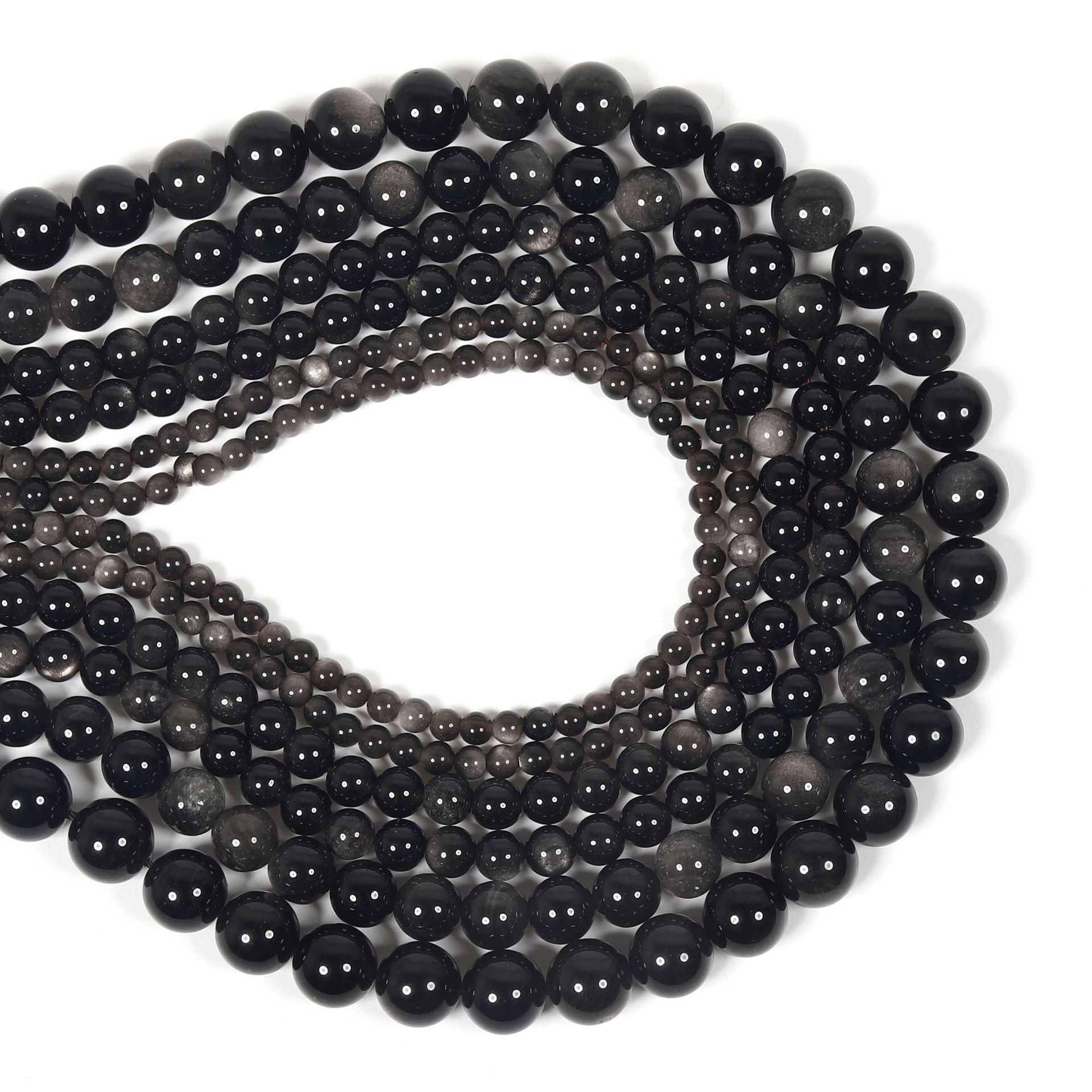 Gemstone smykker perler, Silver + Obsidian, Runde, du kan DIY & forskellig størrelse for valg, Solgt Per Ca. 38 cm Strand