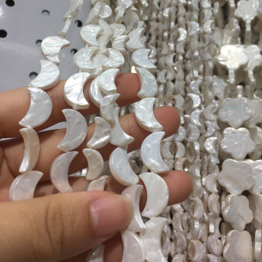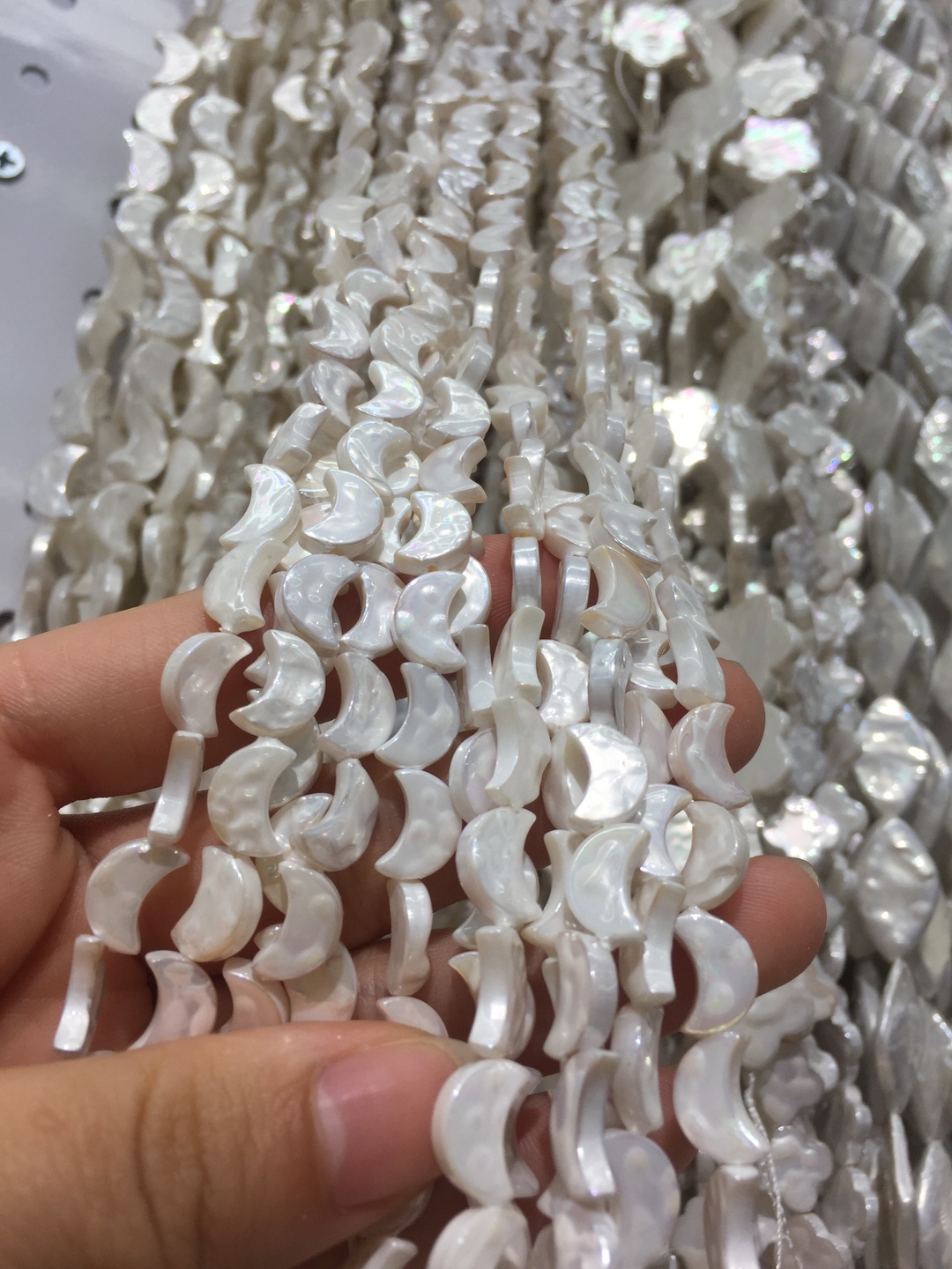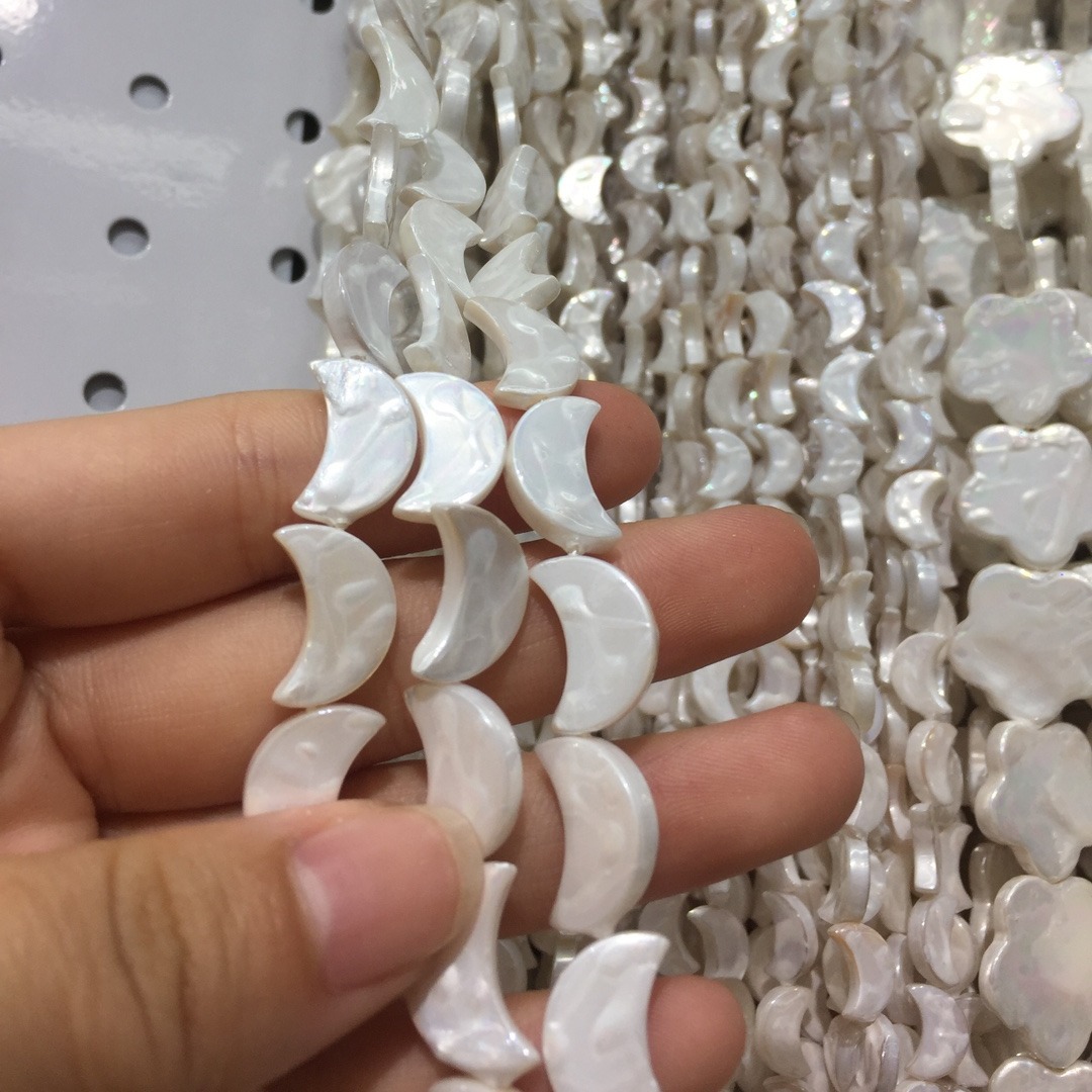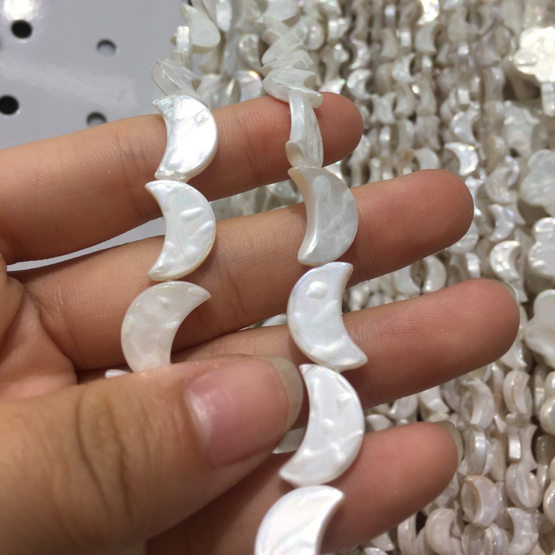 Naturlig Freshwater Shell Perler, Moon, du kan DIY, hvid, 5x15mm, Solgt af Strand