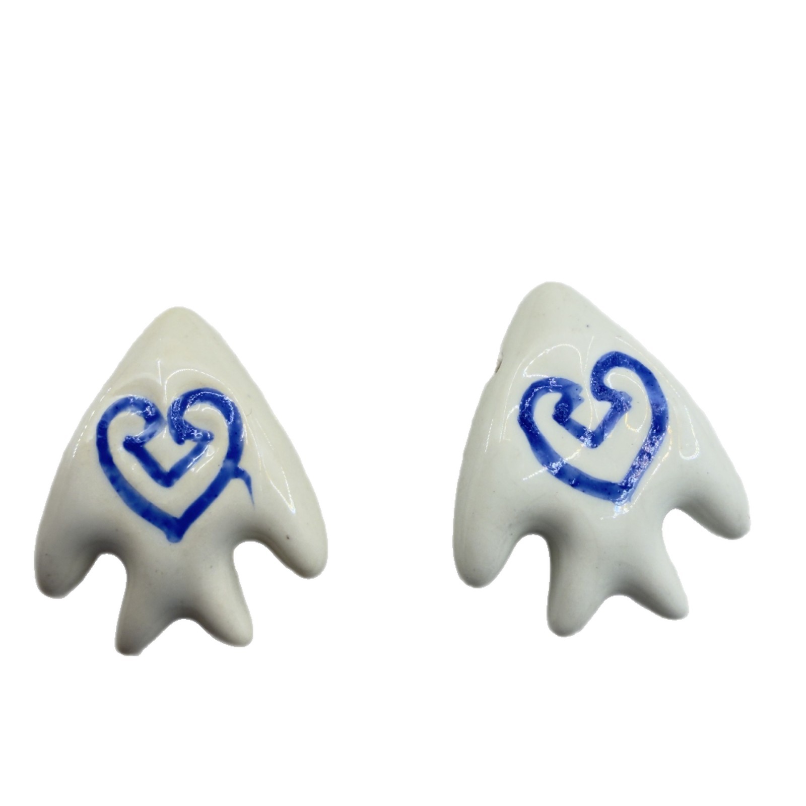 Porcelæn smykker perler, Fisk, hånd tegning, du kan DIY, flere farver til valg, 34x30x9mm, Hole:Ca. 2mm, 100pc'er/Bag, Solgt af Bag