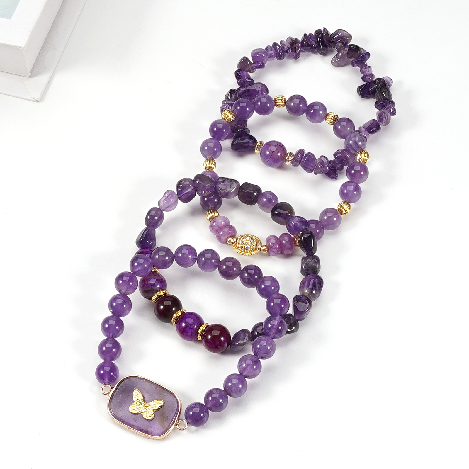 Quartz Armbånd, Messing, med Ametyst, forgyldt, mode smykker, flere farver til valg, Hole:Ca. 1mm, 4pc'er/sæt, Solgt af sæt