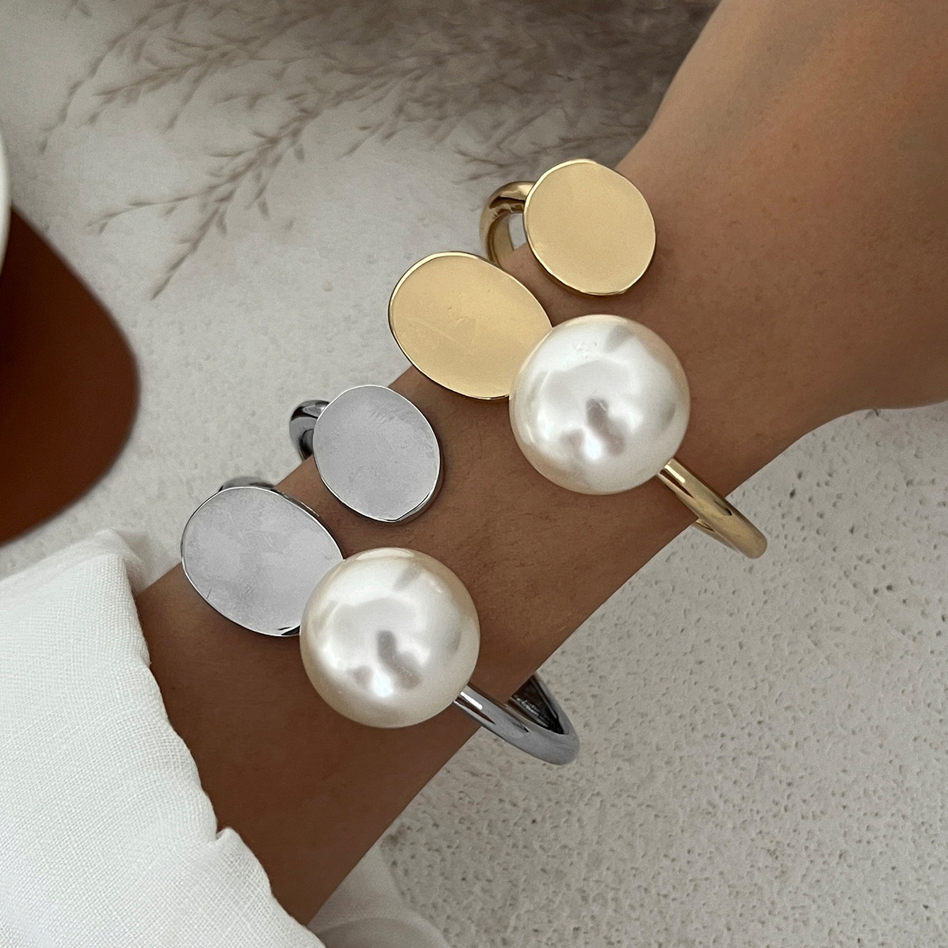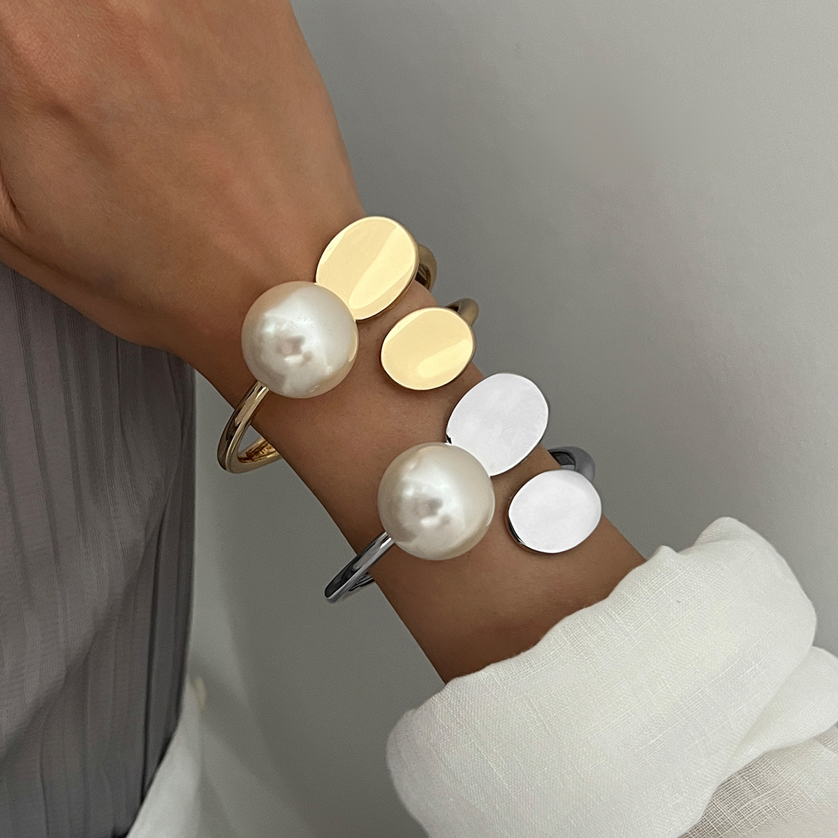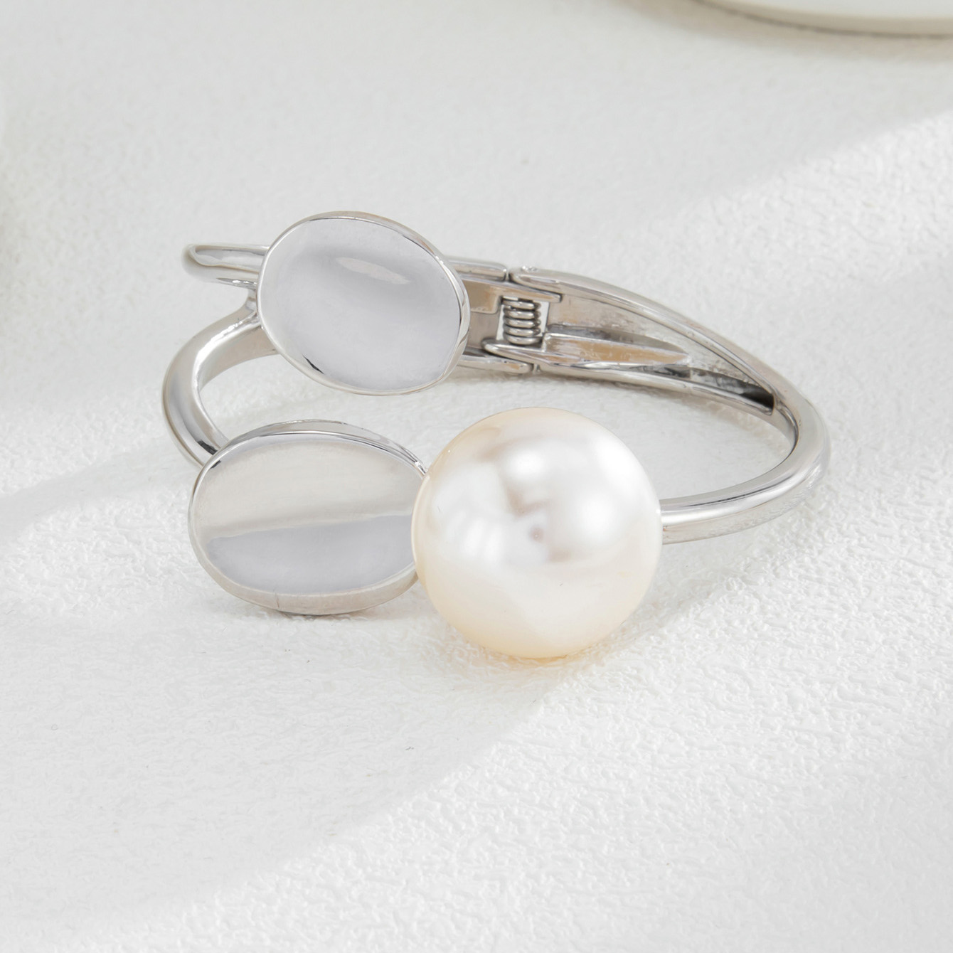 Resin Cuff Bangle, med Plastic Pearl, forgyldt, mode smykker & for kvinde, flere farver til valg, Solgt af PC