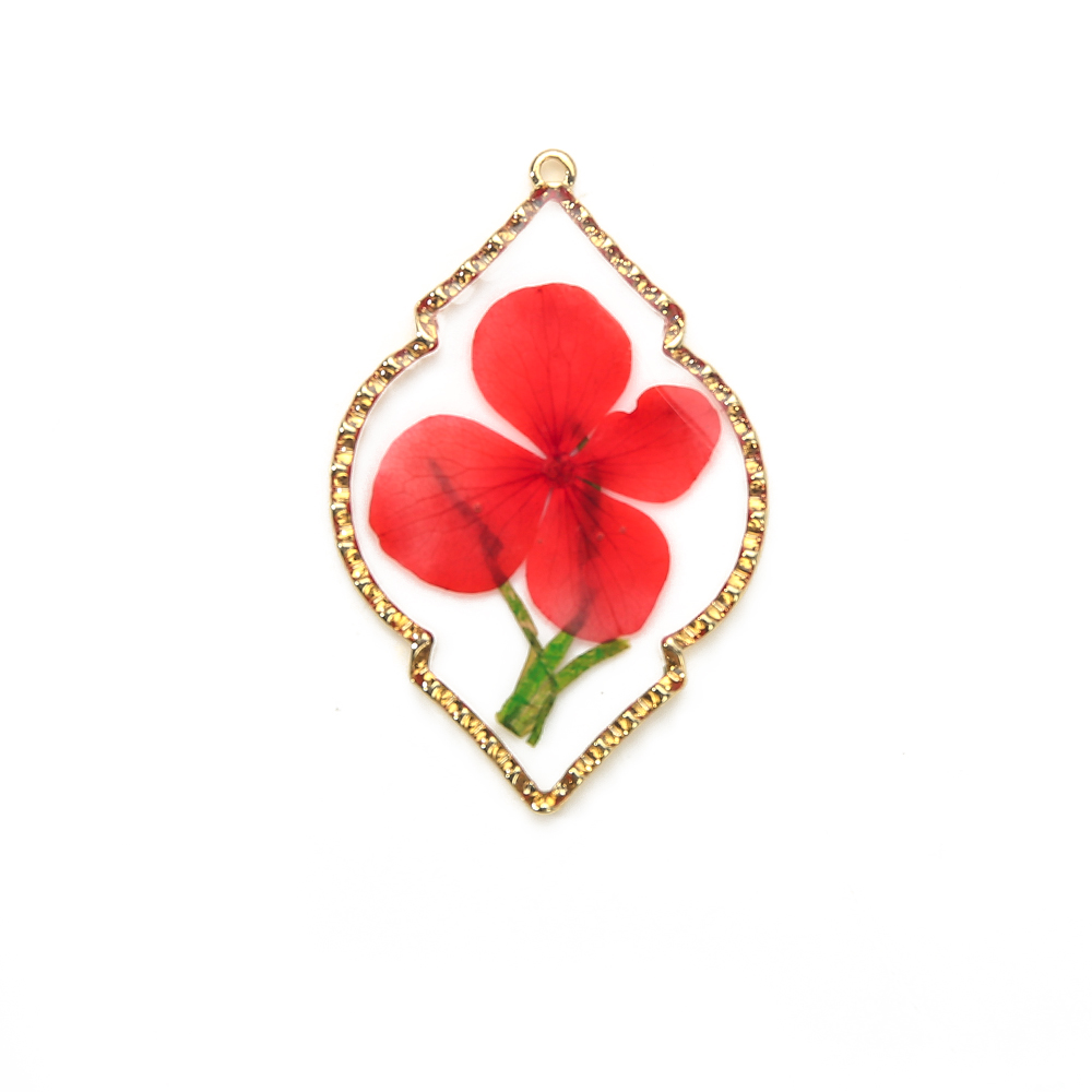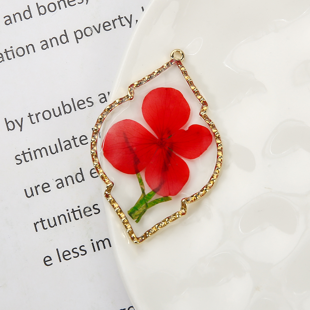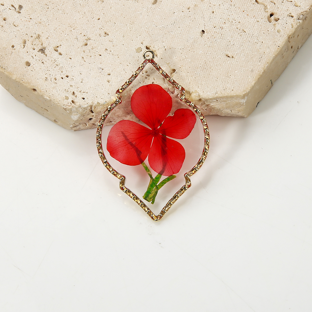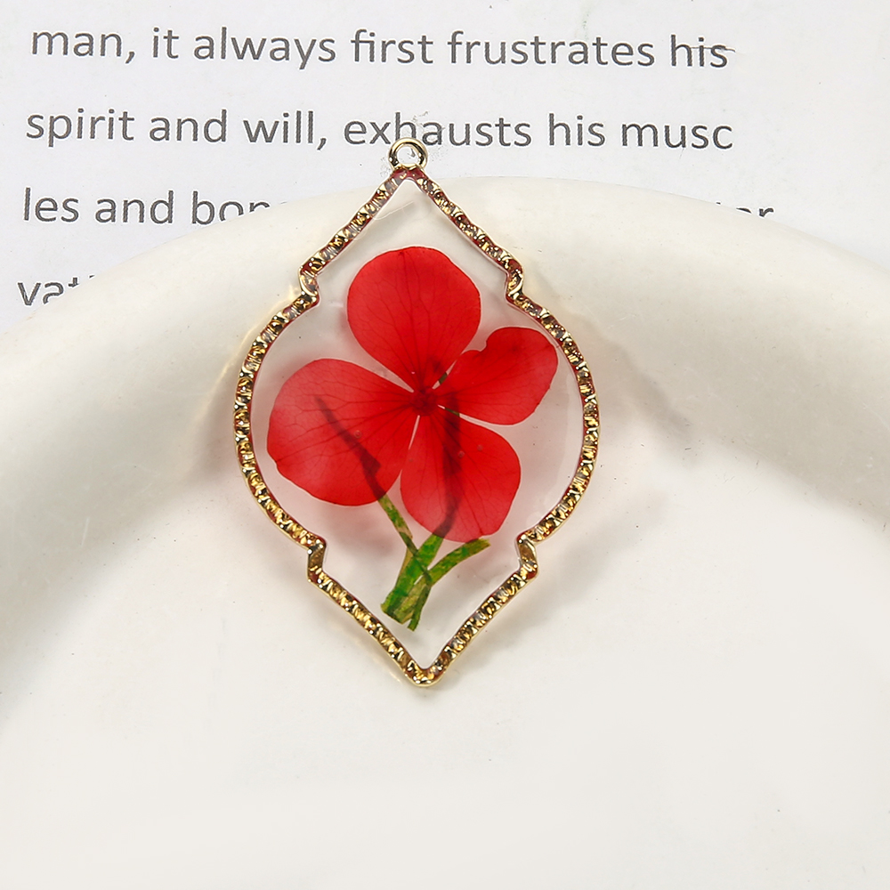 Resin Pendel, med Tørret blomst & Messing, Rhombus, du kan DIY, blandede farver, 33.74x2.40x51.44mm, Solgt af PC