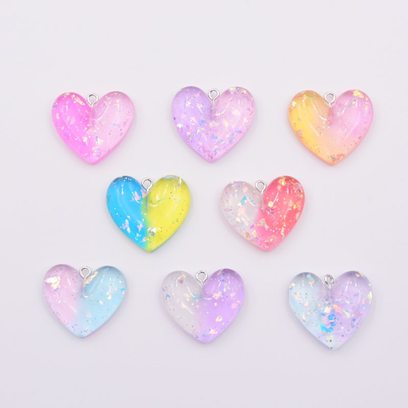 Resin vedhæng, Heart, gradient farve & du kan DIY, flere farver til valg, 24x27mm, Solgt af PC