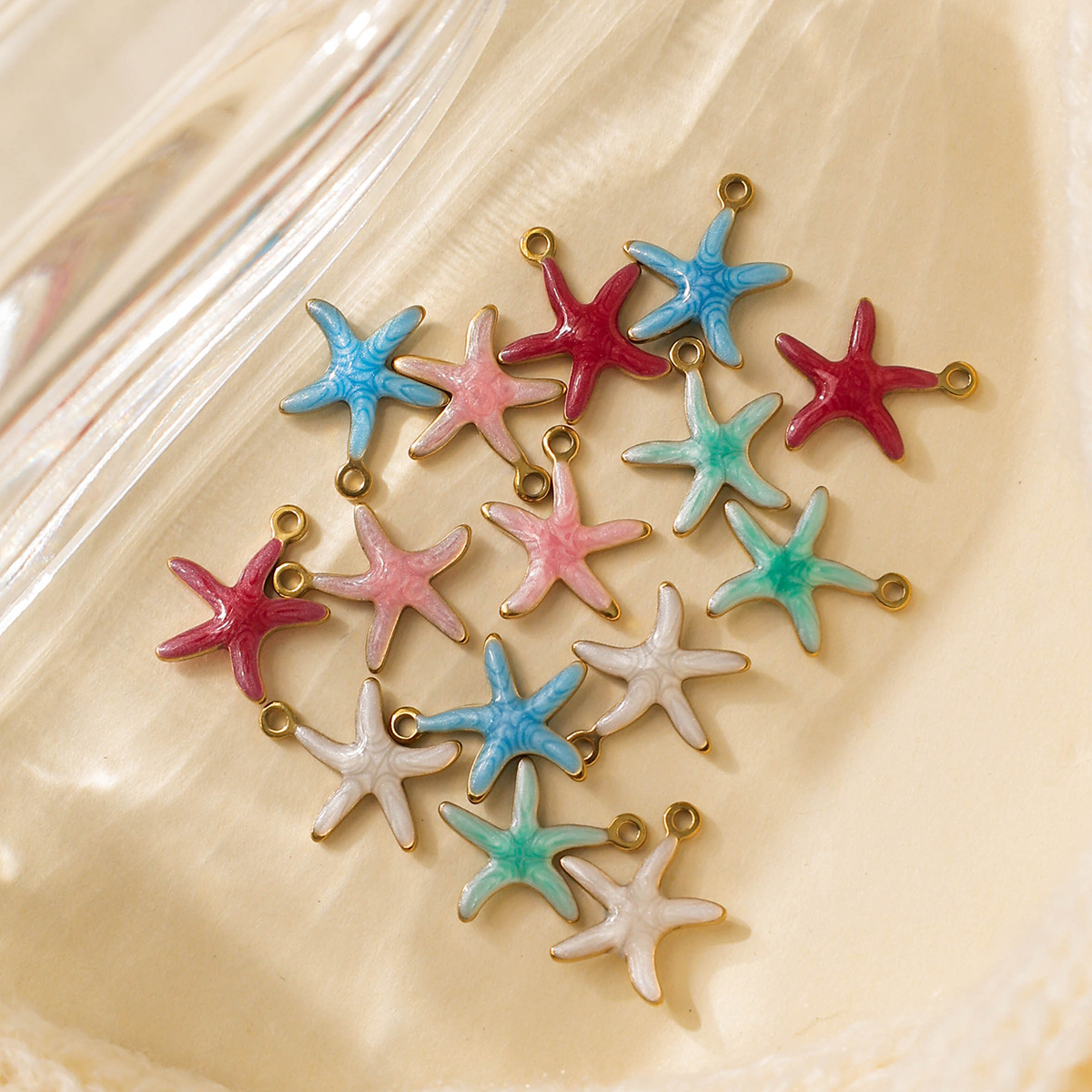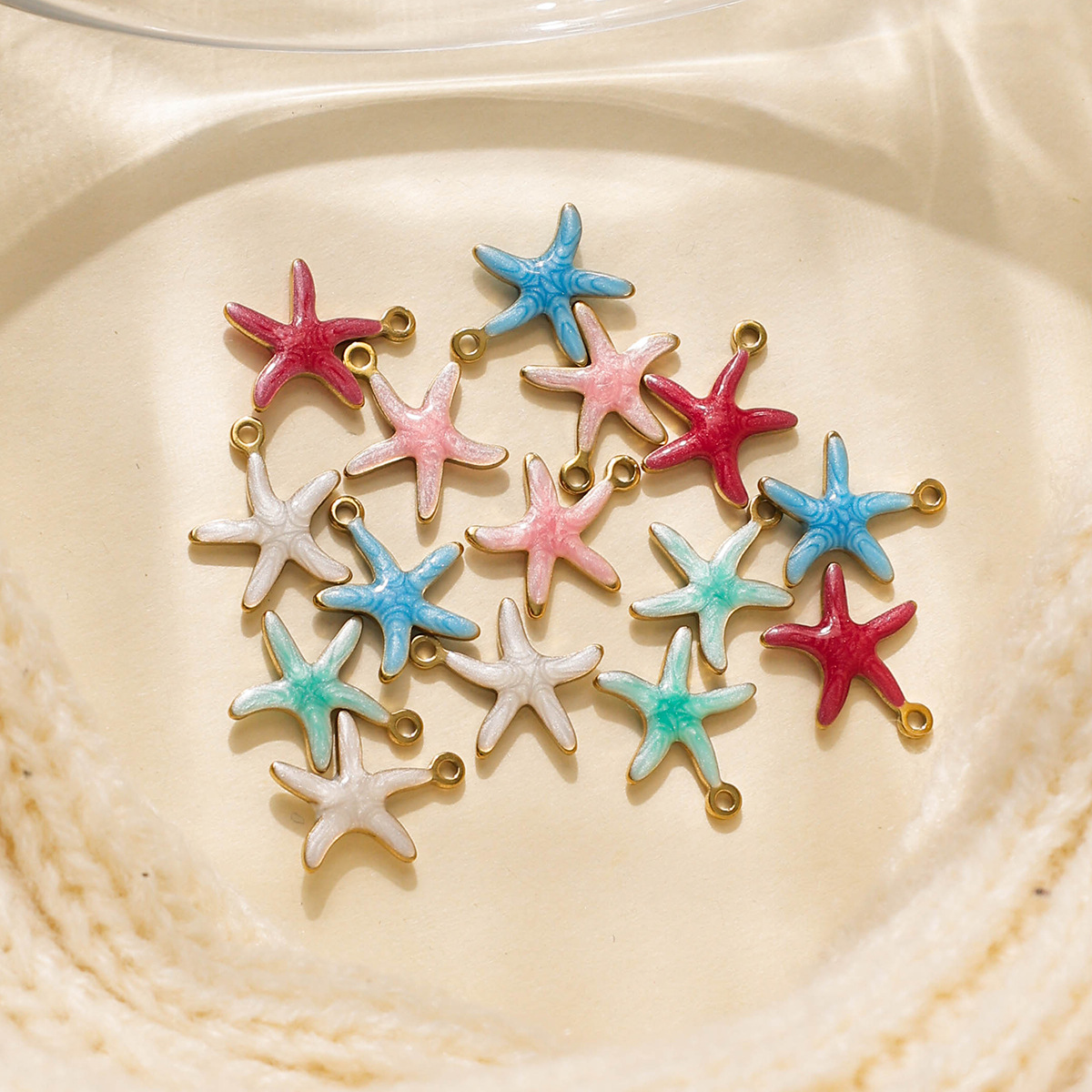 Rustfrit stål Animal Pendler, 304 rustfrit stål, Starfish, forgyldt, du kan DIY & emalje, flere farver til valg, 10pc'er/Bag, Solgt af Bag