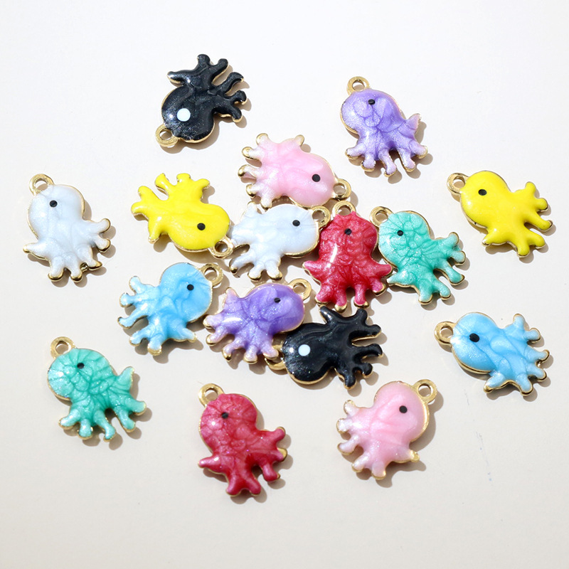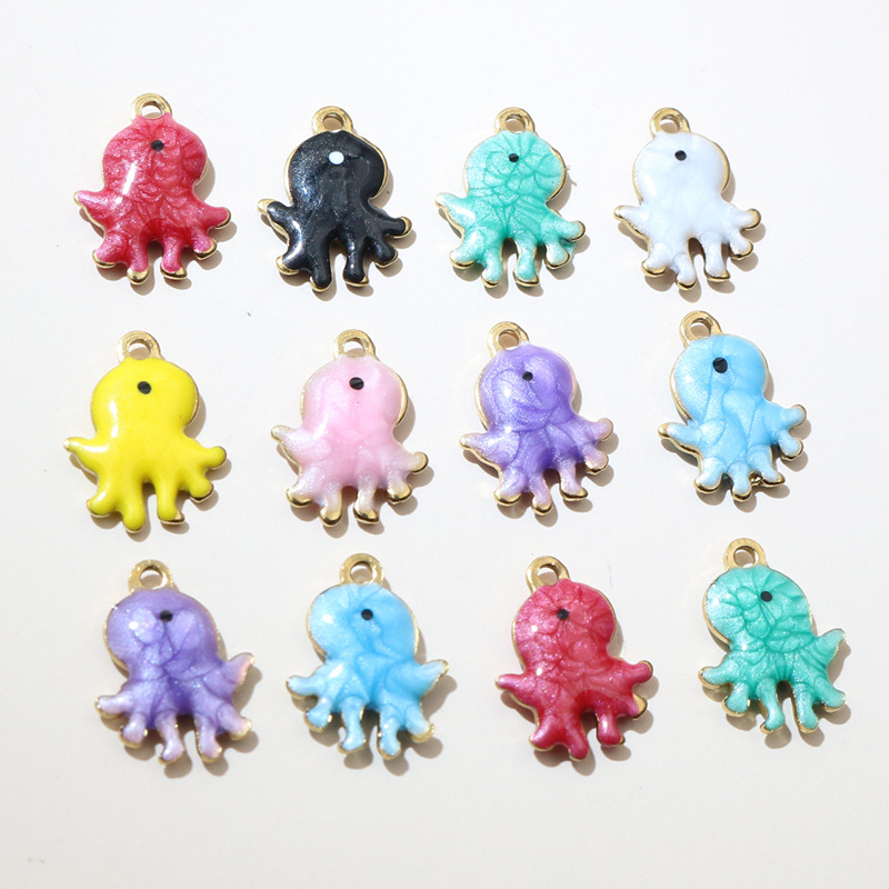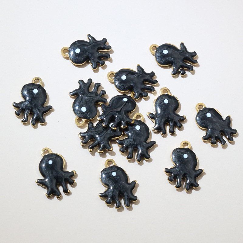 Rustfrit stål Animal Pendler, 304 rustfrit stål, Ottearmet blæksprutte, guldfarve belagt, du kan DIY & emalje, flere farver til valg, 12x9mm, Solgt af PC