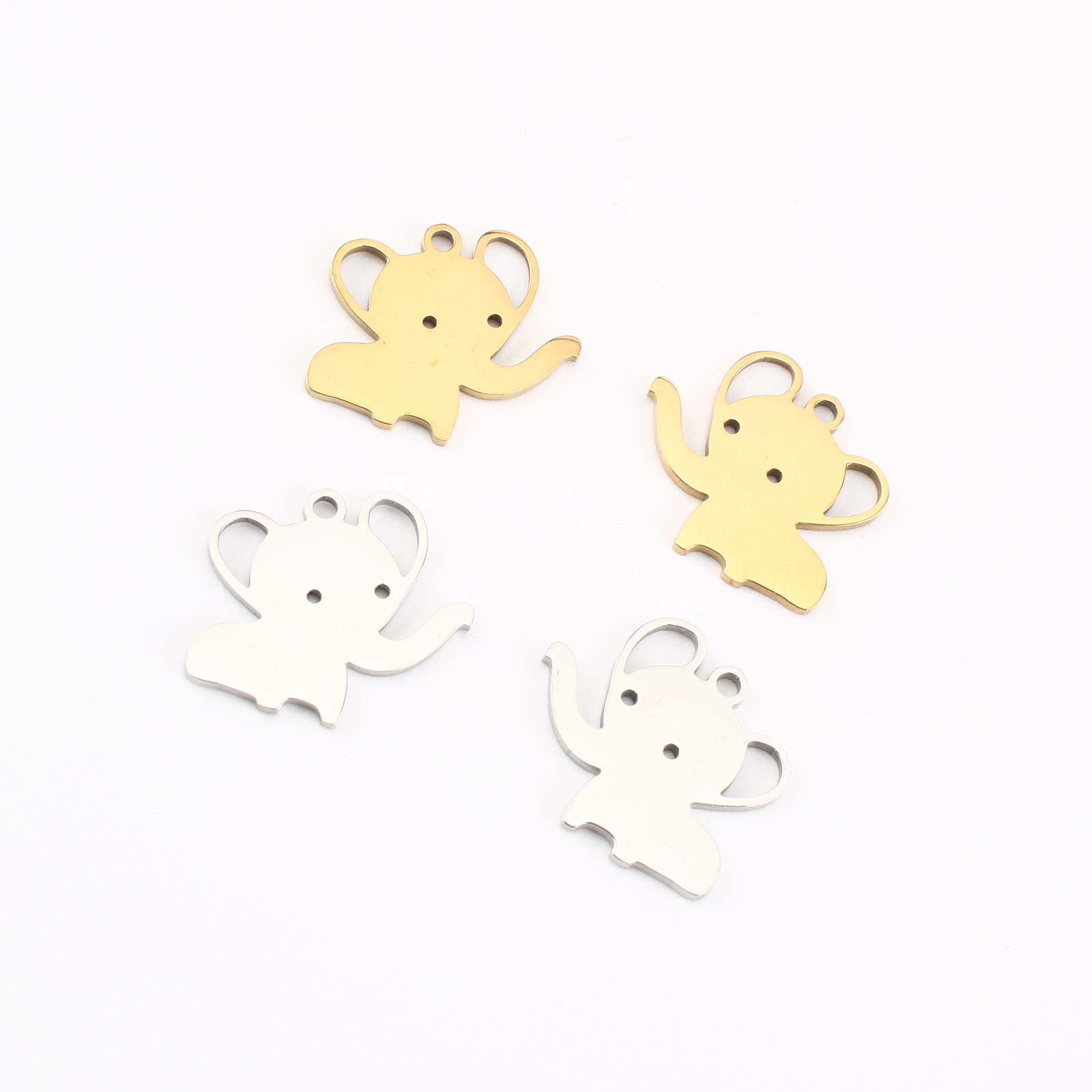 Rustfrit stål Animal Pendler, 304 rustfrit stål, Elephant, forgyldt, du kan DIY & hule, flere farver til valg, 15x17x1mm, Solgt af PC