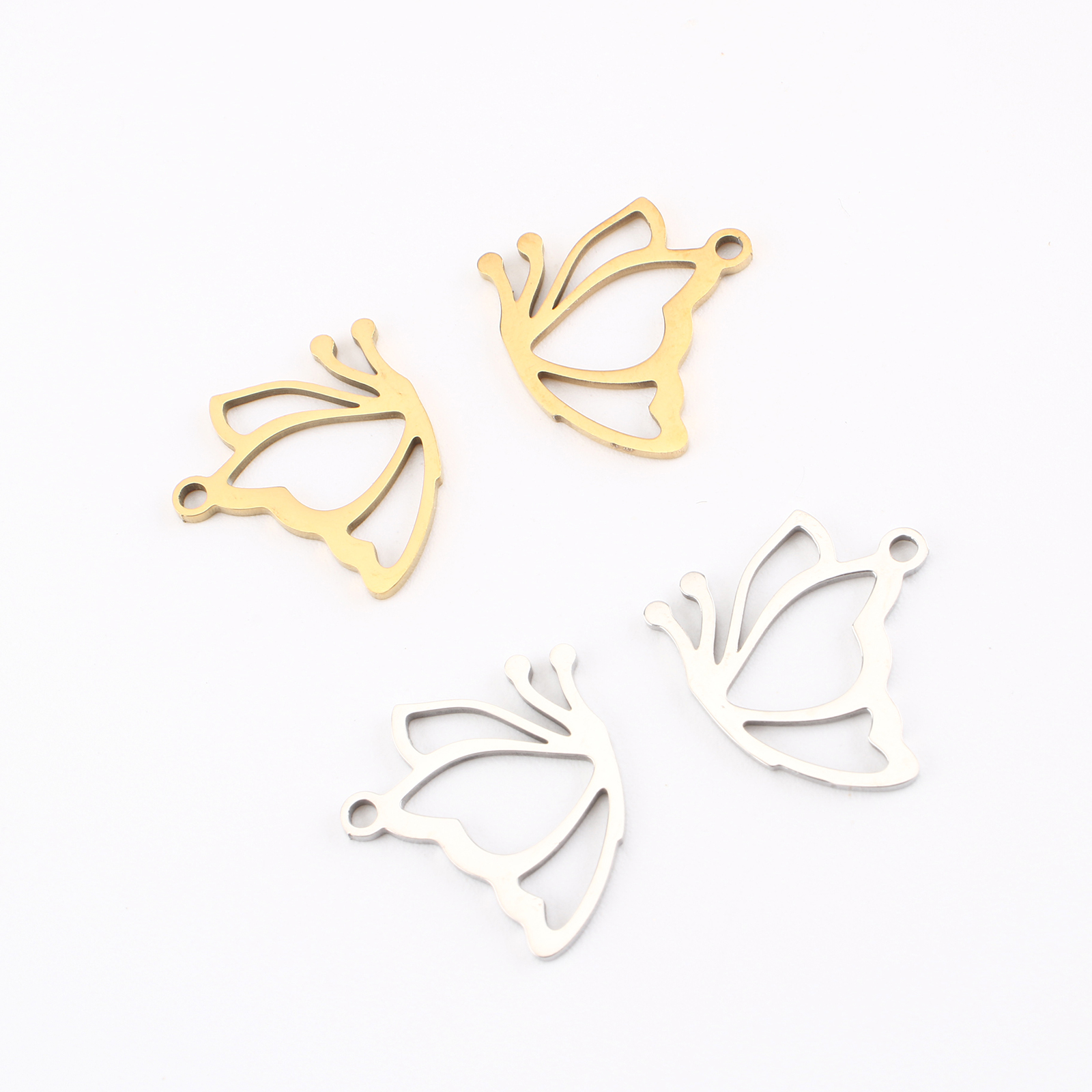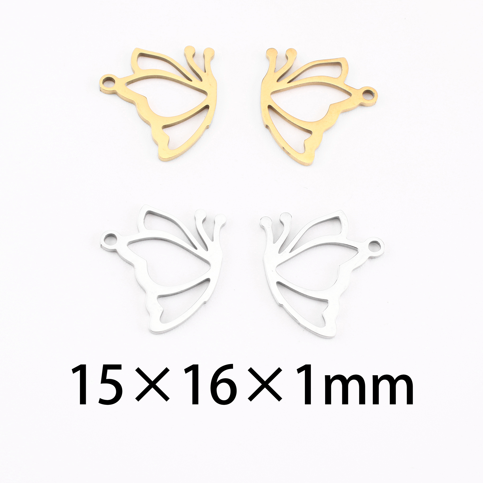Rustfrit stål Animal Pendler, 304 rustfrit stål, Butterfly, forgyldt, du kan DIY & hule, flere farver til valg, 15x16x1mm, Solgt af PC