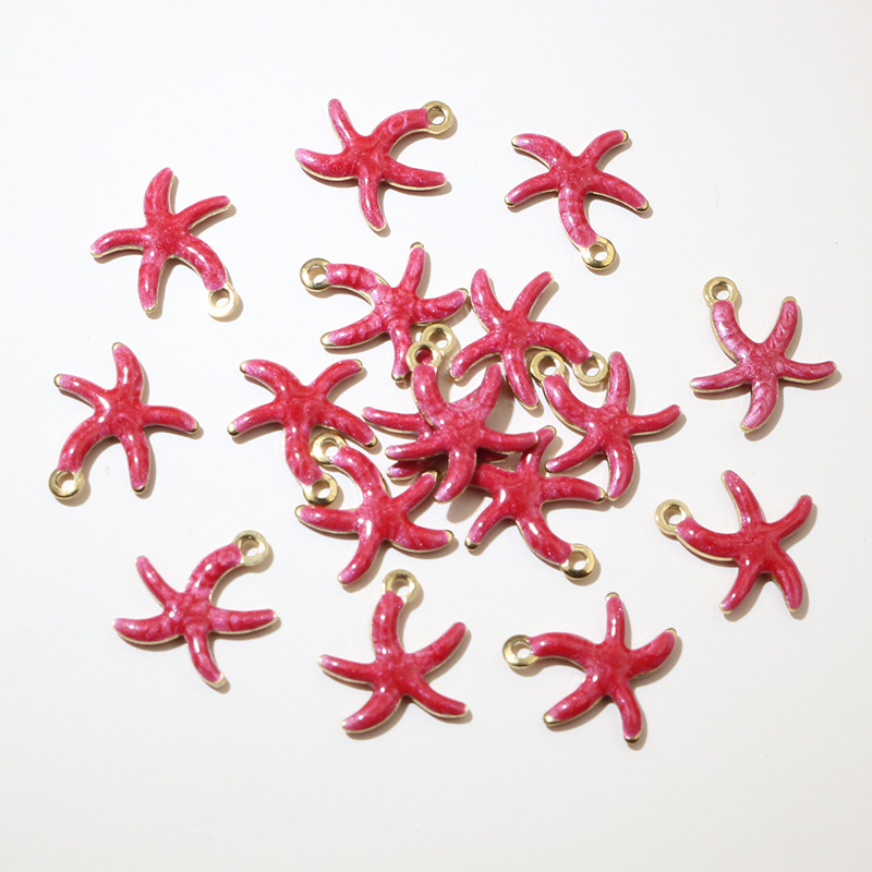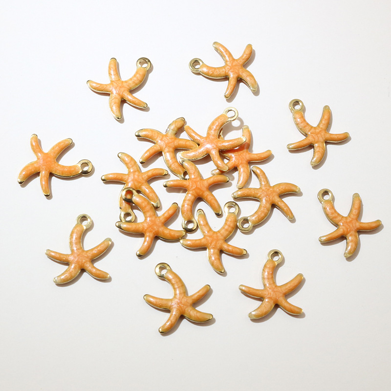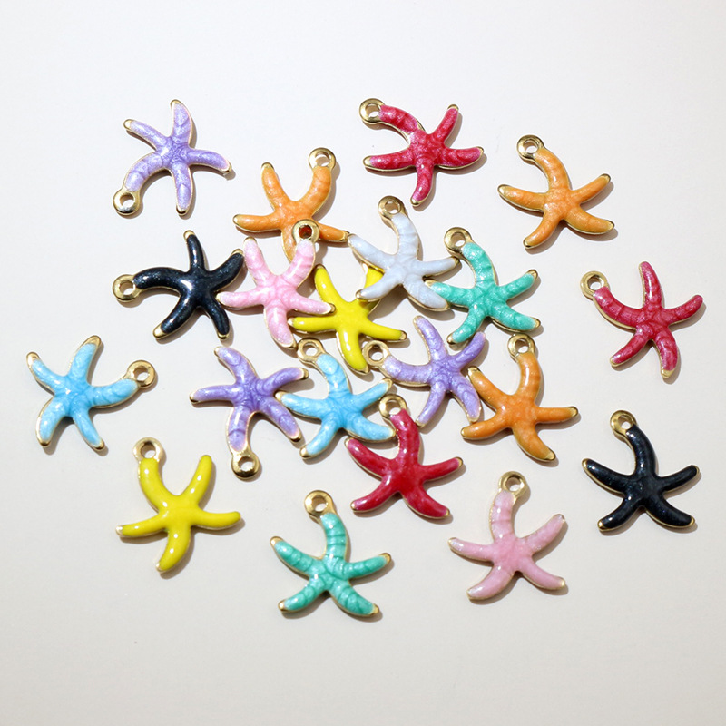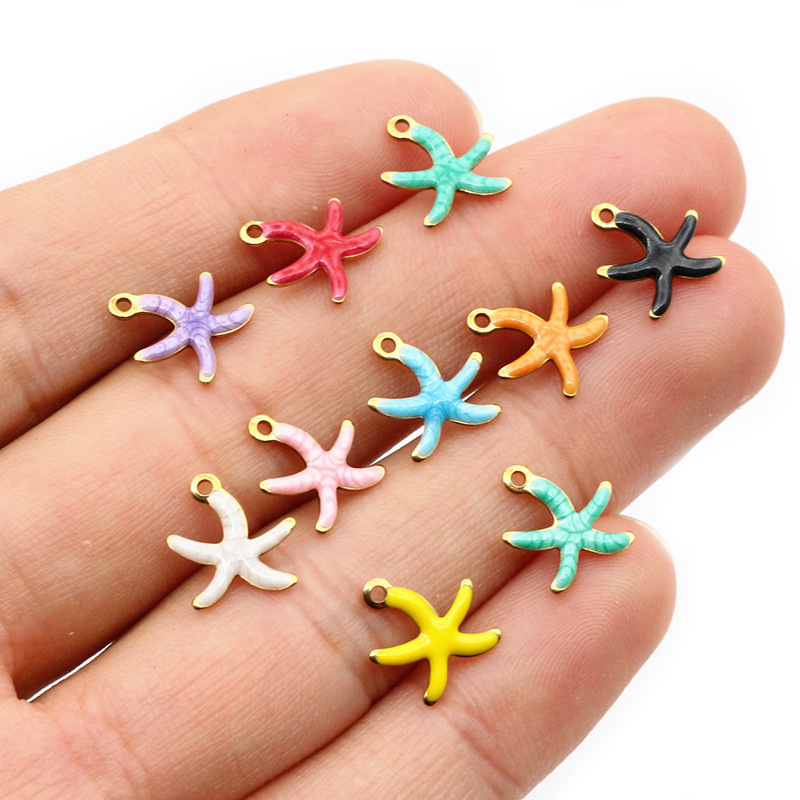 Rustfrit stål Animal Pendler, 304 rustfrit stål, Starfish, guldfarve belagt, du kan DIY & emalje, flere farver til valg, 10x10mm, Solgt af PC