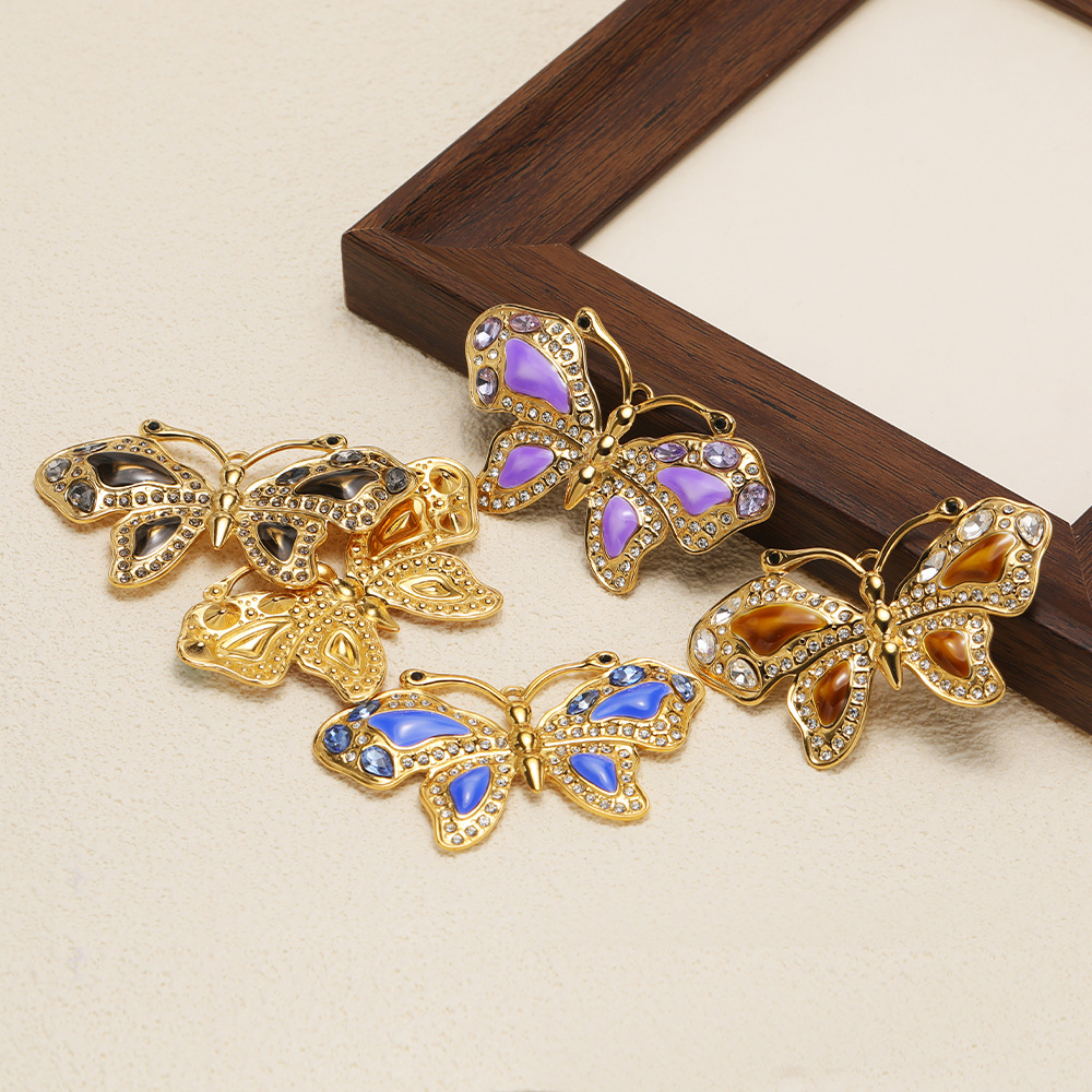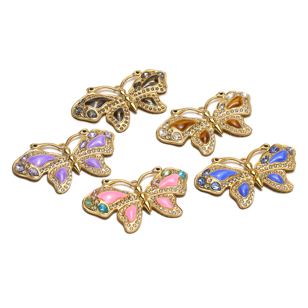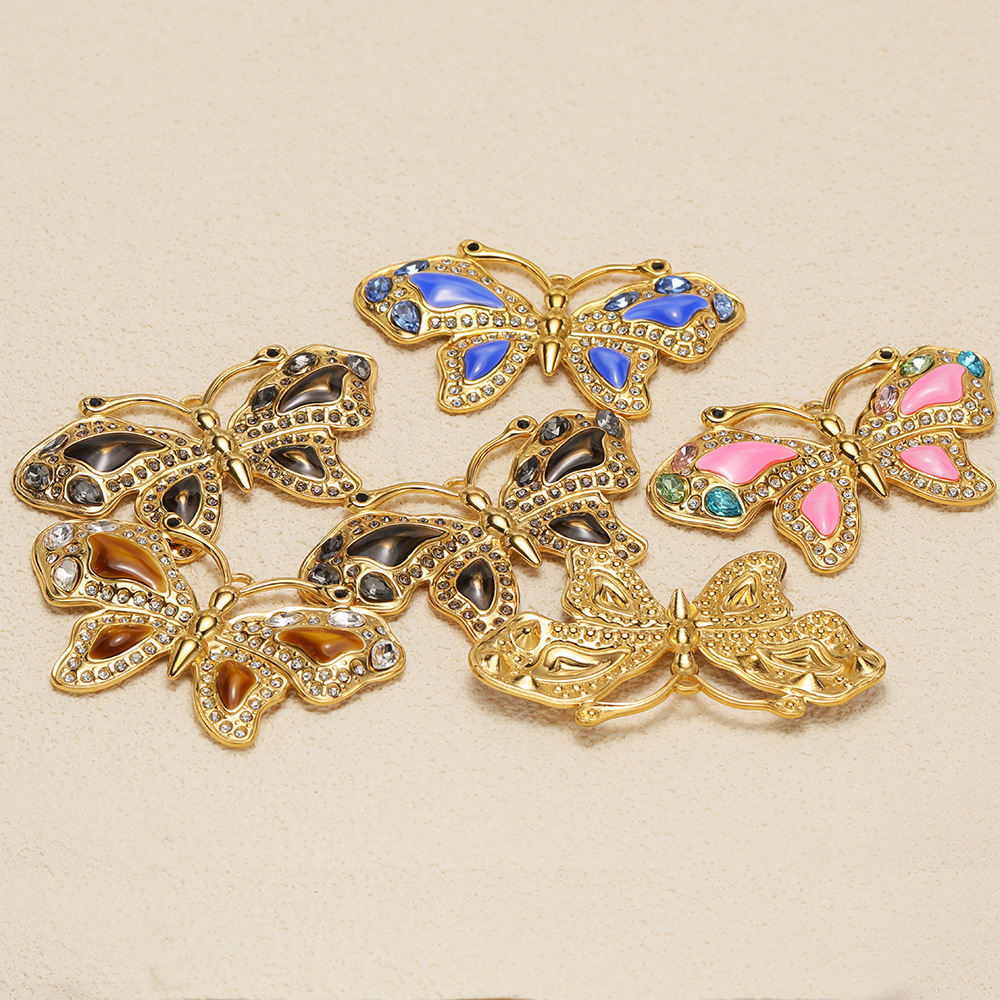 Rustfrit stål Animal Pendler, 304 rustfrit stål, Butterfly, guldfarve belagt, du kan DIY & emalje & med rhinestone, flere farver til valg, 64x38mm, 10pc'er/Bag, Solgt af Bag