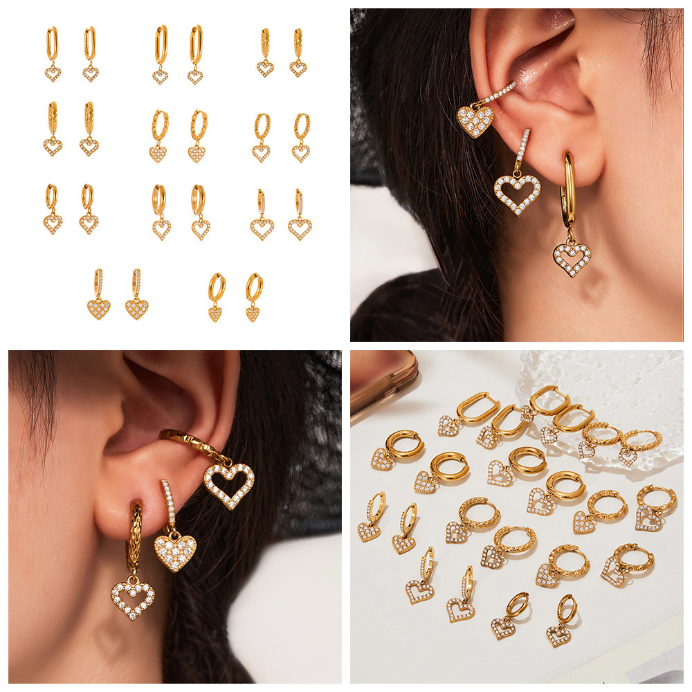 Rustfrit stål Drop ørering, 304 rustfrit stål, guldfarve belagt, mode smykker & Micro Pave cubic zirconia, flere farver til valg, Solgt af par