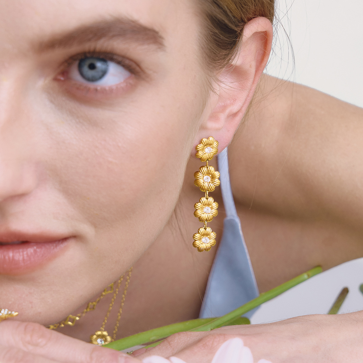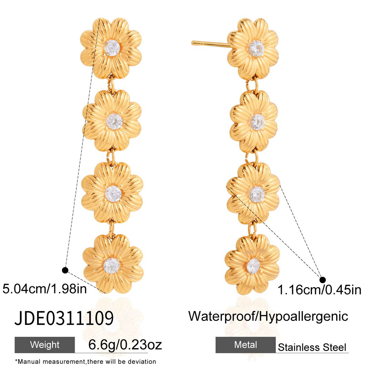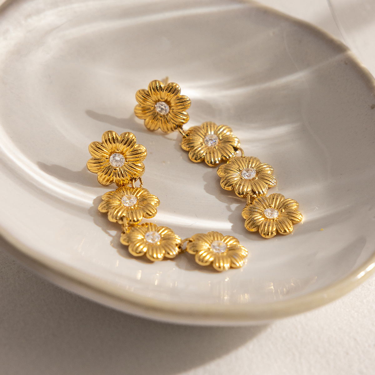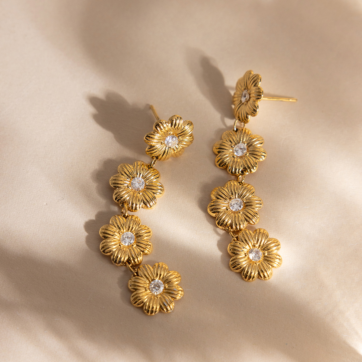 Rustfrit stål Drop ørering, Stainless Steel, Daisy, guldfarve belagt, for kvinde & med cubic zirconia, 11.60x50.40mm, Solgt af par