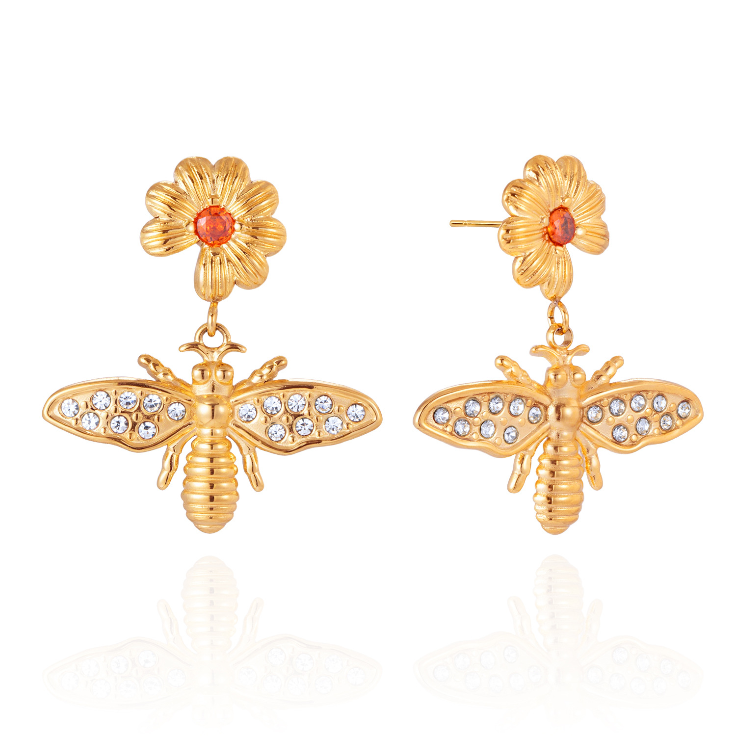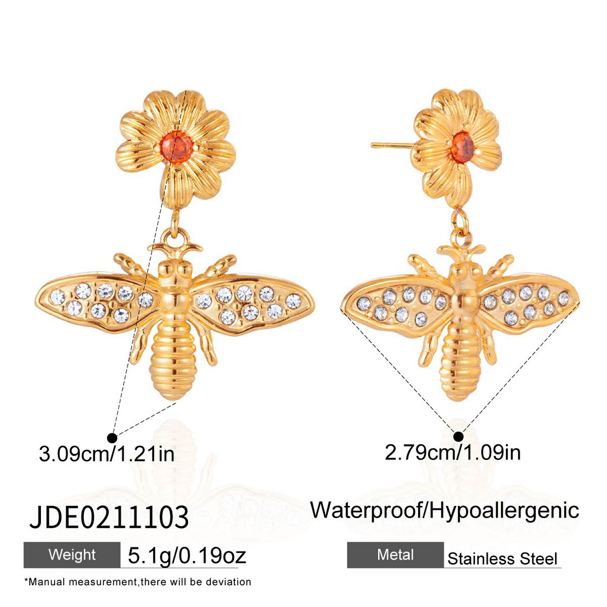 Rustfrit stål Drop ørering, Stainless Steel, guldfarve belagt, Micro Pave cubic zirconia & for kvinde, 27.90x30.90mm, Solgt af par