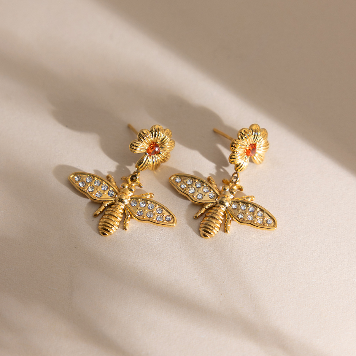 Rustfrit stål Drop ørering, 304 rustfrit stål, med Cubic Zirconia, forgyldt, forskellige stilarter for valg & for kvinde & hule, gylden, Solgt af par