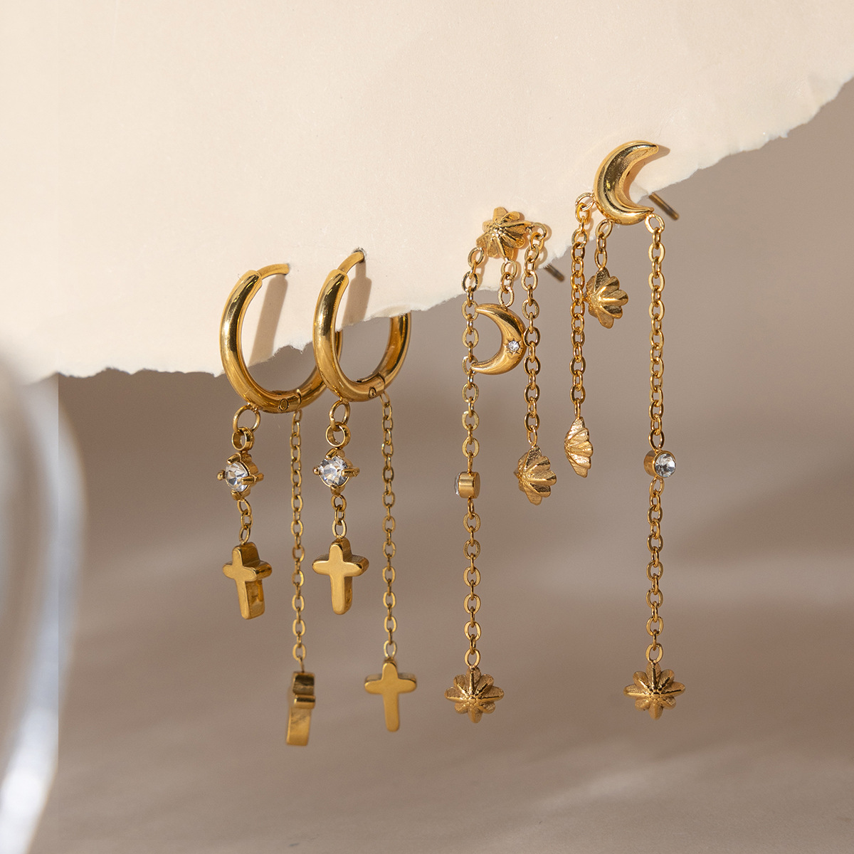 316L Stainless Steel Huggie Hoop Drop Earring, Kryds, mode smykker & Unisex, flere farver til valg, 20x55mm, Solgt af PC