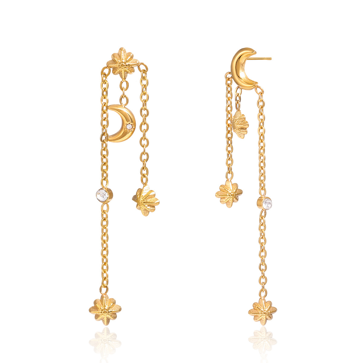 Rustfrit stål Drop ørering, Stainless Steel, med Cubic Zirconia, 18K forgyldt, forskellige stilarter for valg & for kvinde, flere farver til valg, Solgt af par