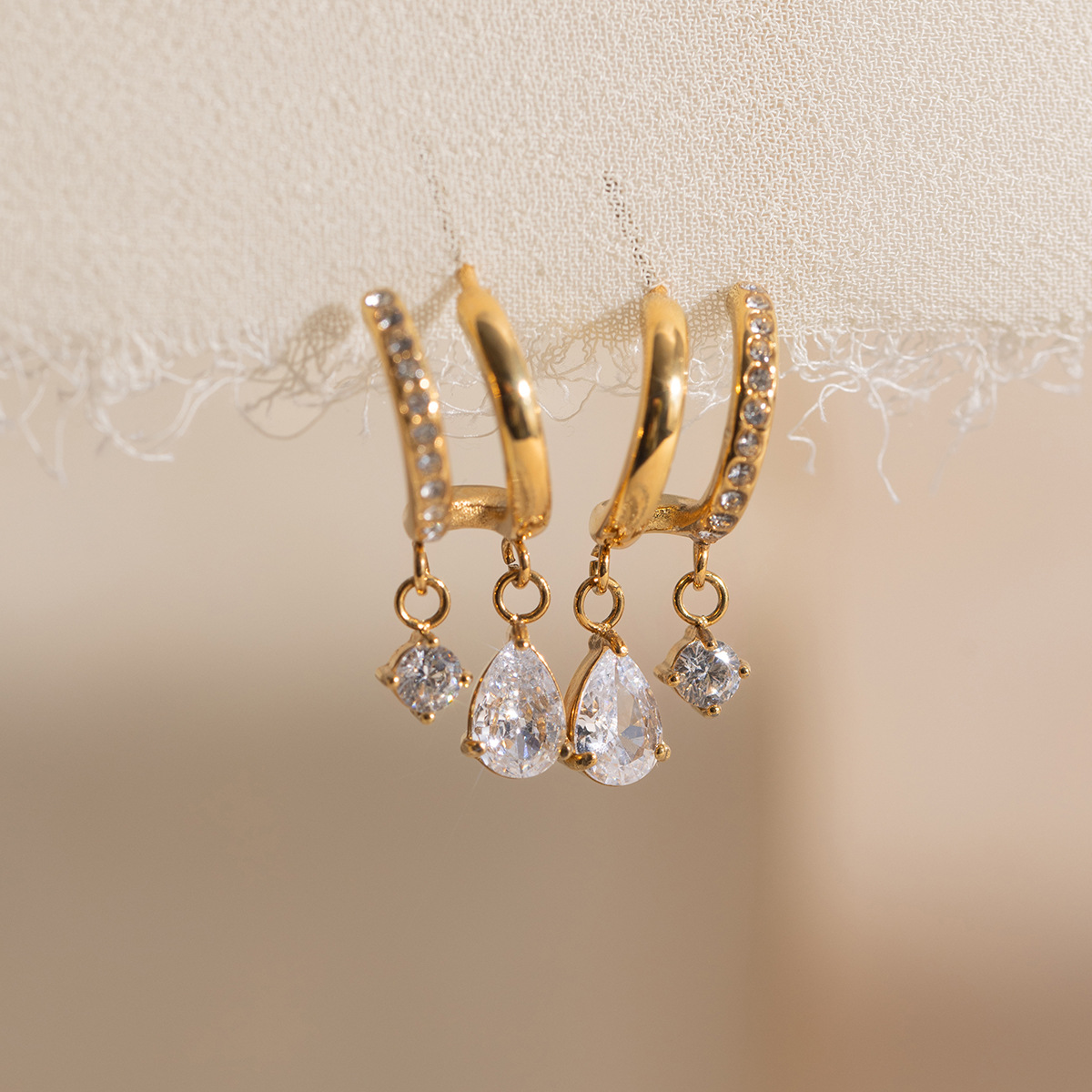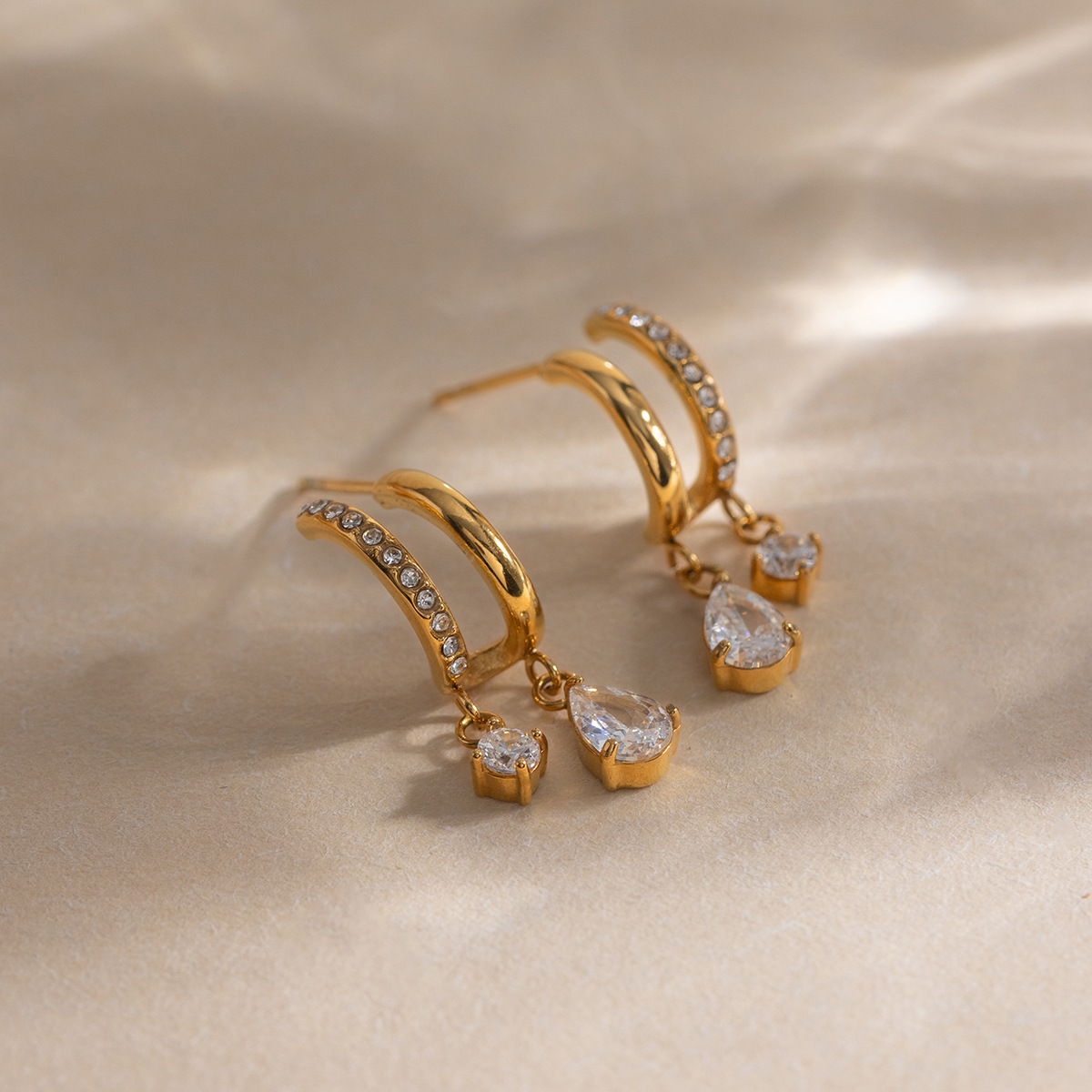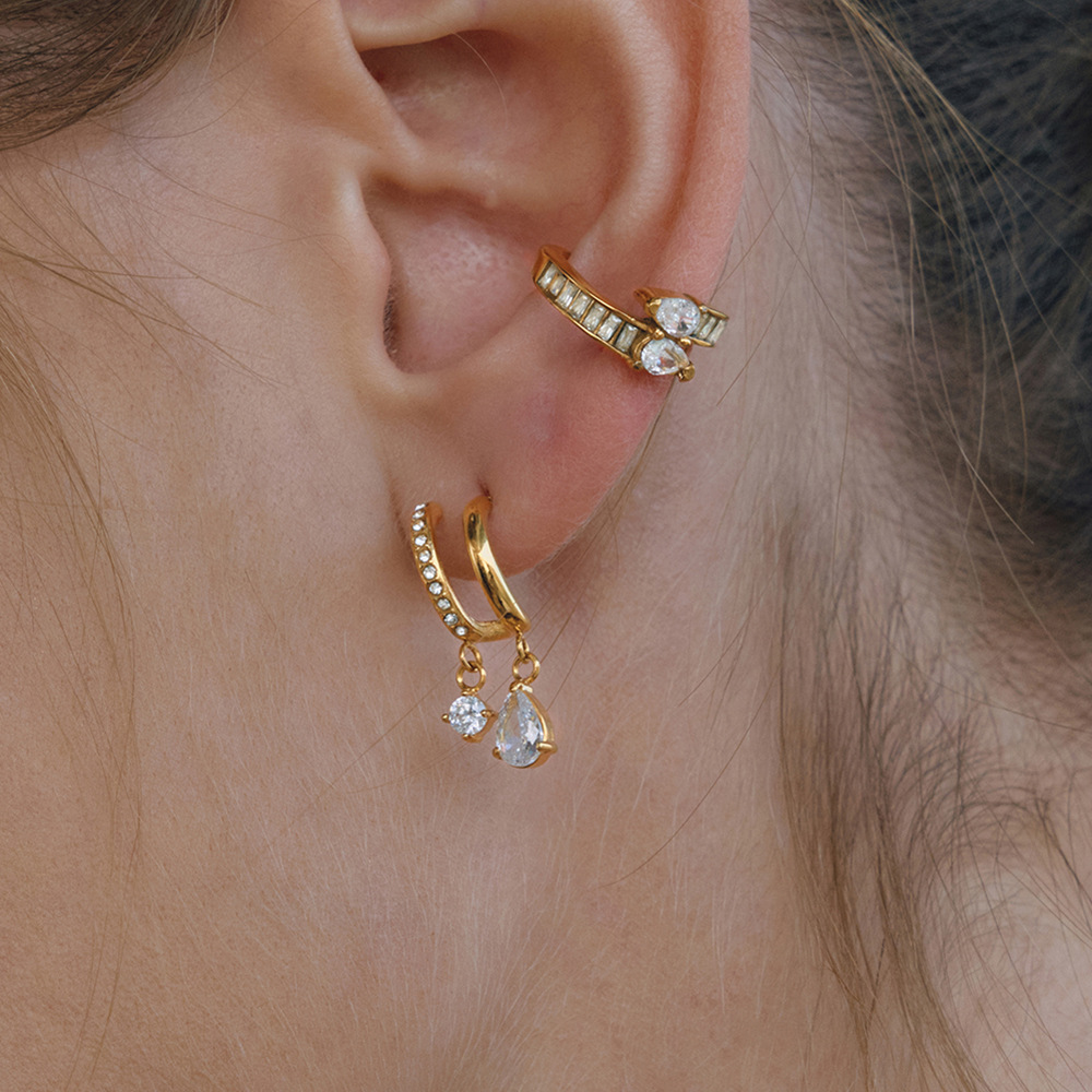 Rustfrit stål Drop ørering, Stainless Steel, med Cubic Zirconia, 18K forgyldt, forskellige stilarter for valg & for kvinde, flere farver til valg, Solgt af par
