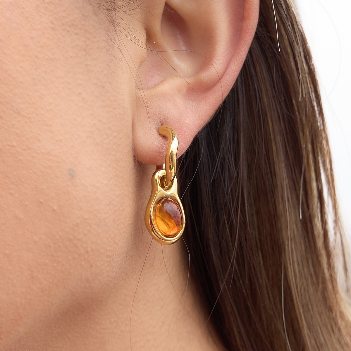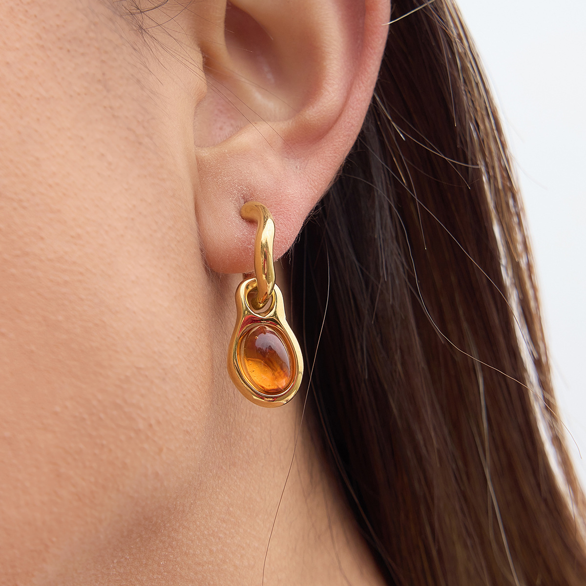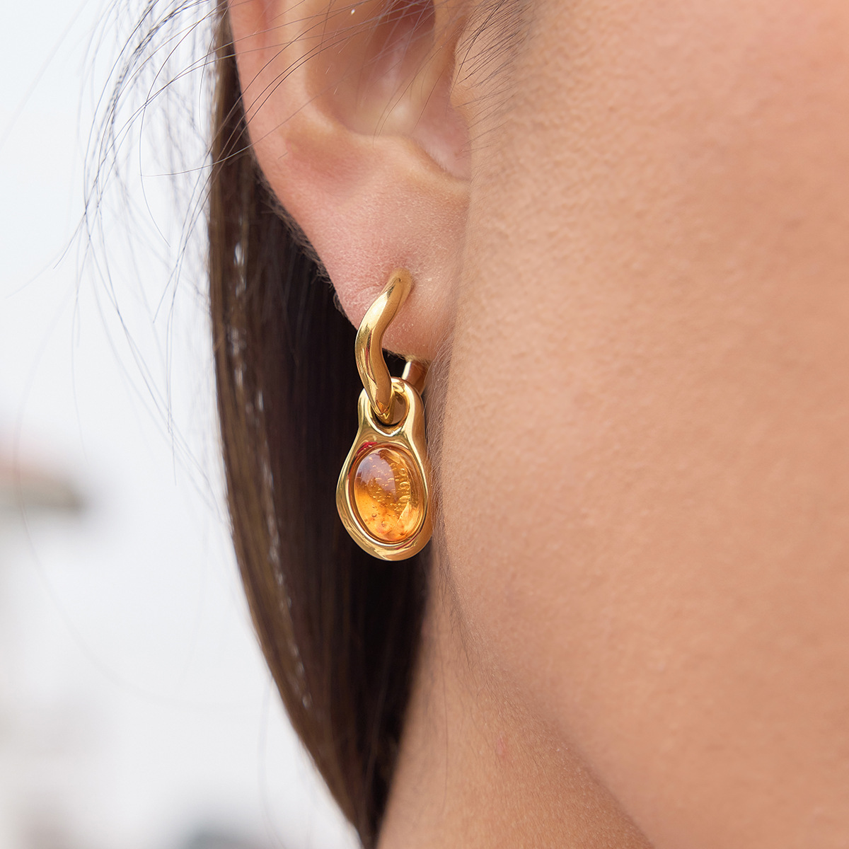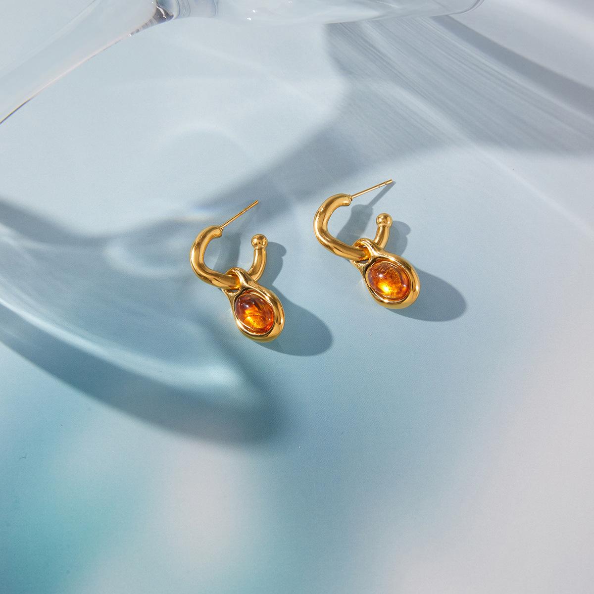 Rustfrit stål Drop ørering, Stainless Steel, med Resin, guldfarve belagt, for kvinde, rav, Solgt af par