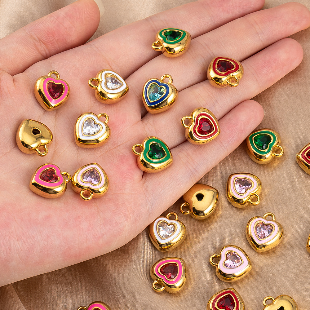 Rustfrit stål Heart Vedhæng, 304 rustfrit stål, forgyldt, du kan DIY & emalje & med rhinestone, flere farver til valg, 10pc'er/Bag, Solgt af Bag