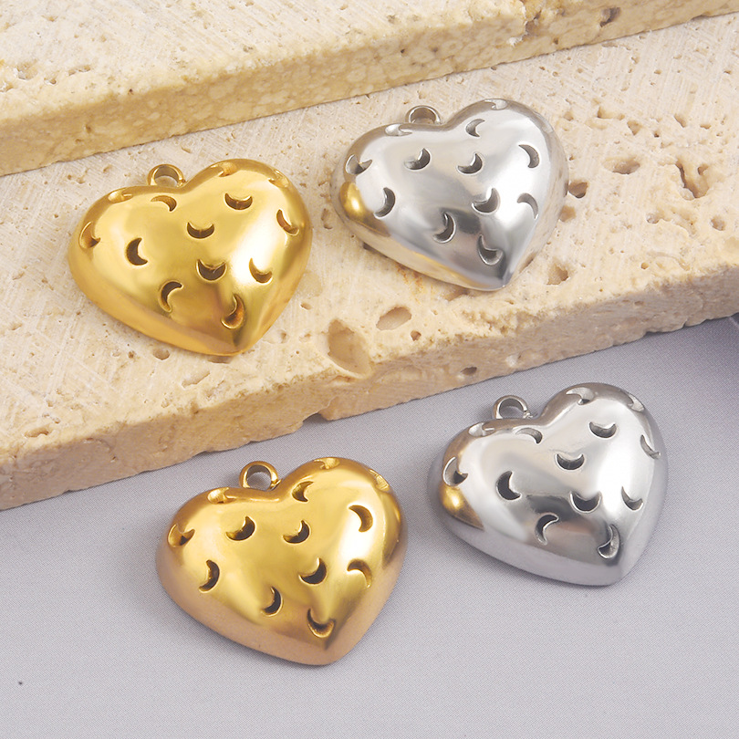 Rustfrit stål Heart Vedhæng, 304 rustfrit stål, forgyldt, du kan DIY & hule, flere farver til valg, 10pc'er/Bag, Solgt af Bag