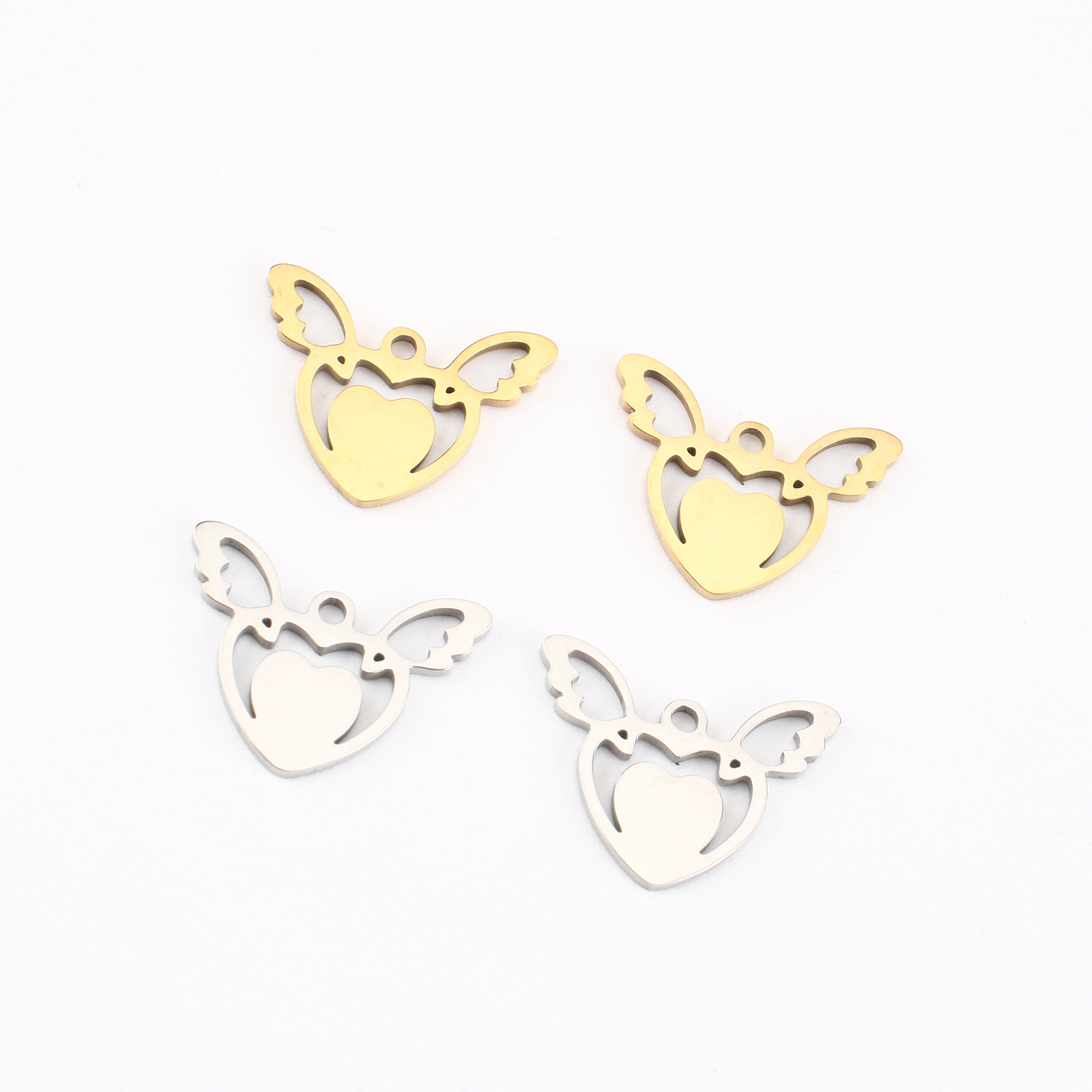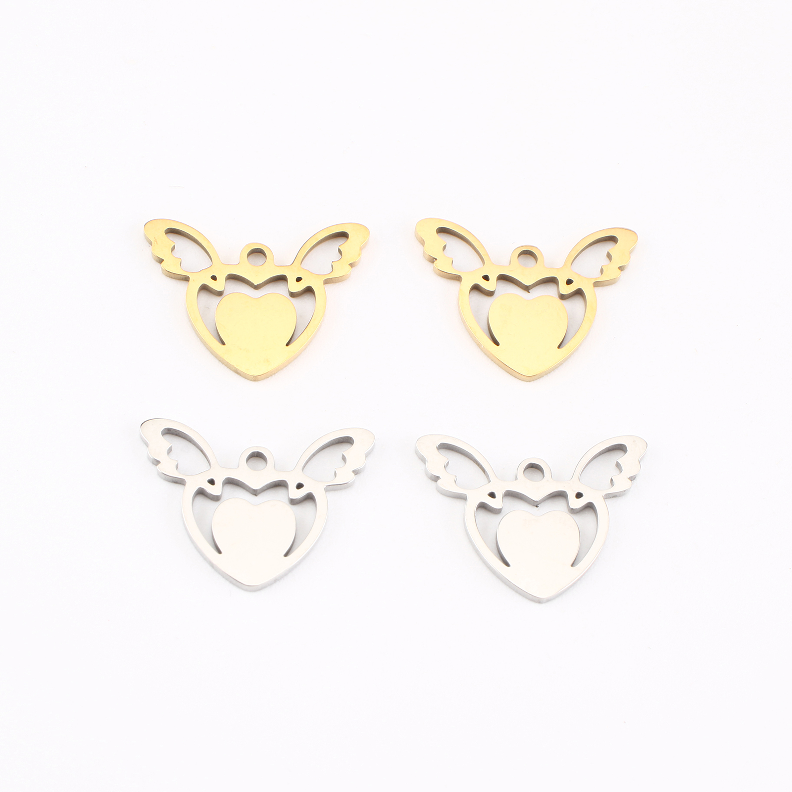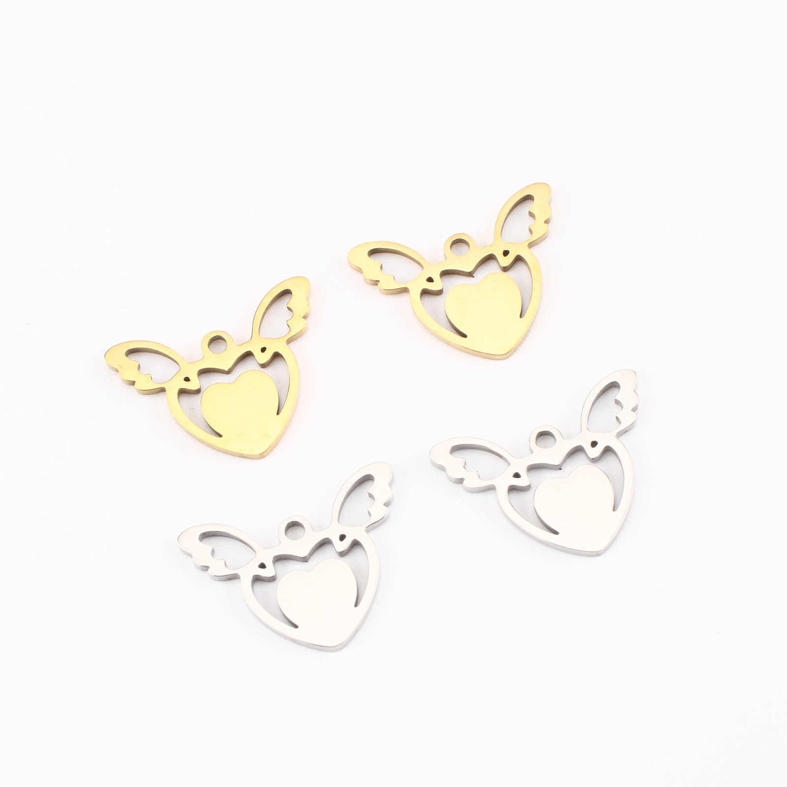 Rustfrit stål Heart Vedhæng, 304 rustfrit stål, Winged Heart, forgyldt, du kan DIY & hule, flere farver til valg, 13x16x1mm, Solgt af PC