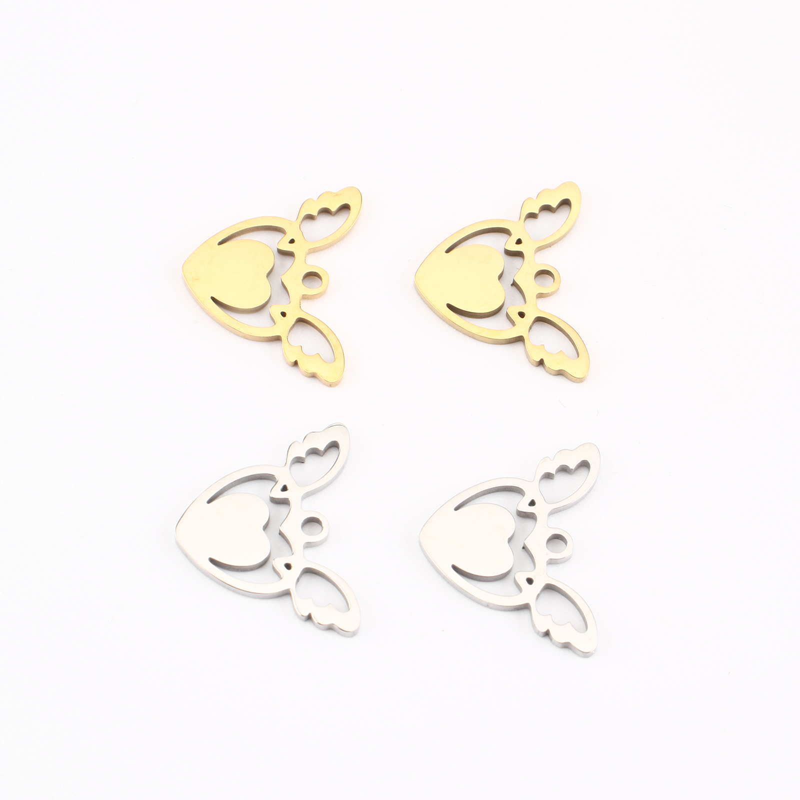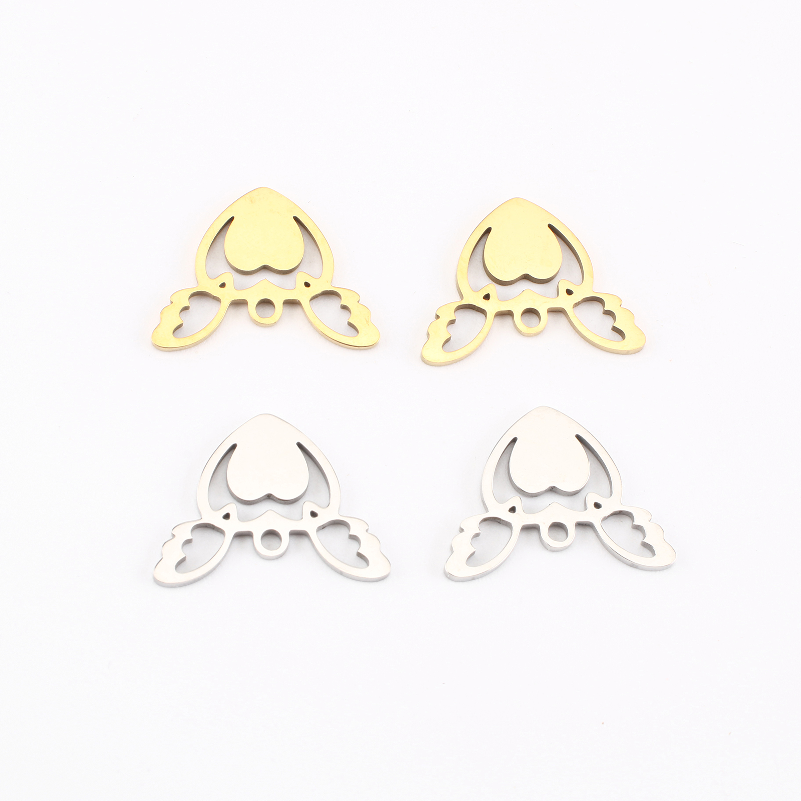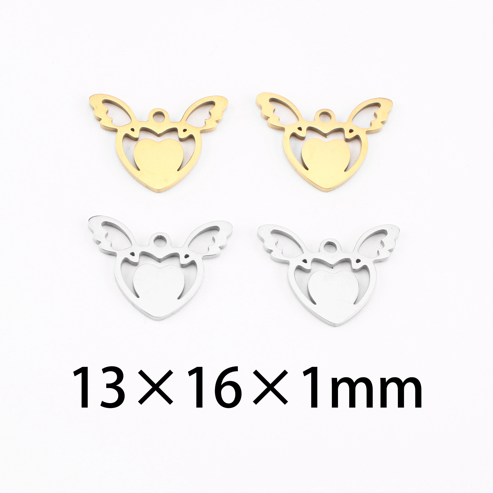 Rustfrit stål Heart Vedhæng, 304 rustfrit stål, Winged Heart, forgyldt, du kan DIY & hule, flere farver til valg, 13x16x1mm, Solgt af PC