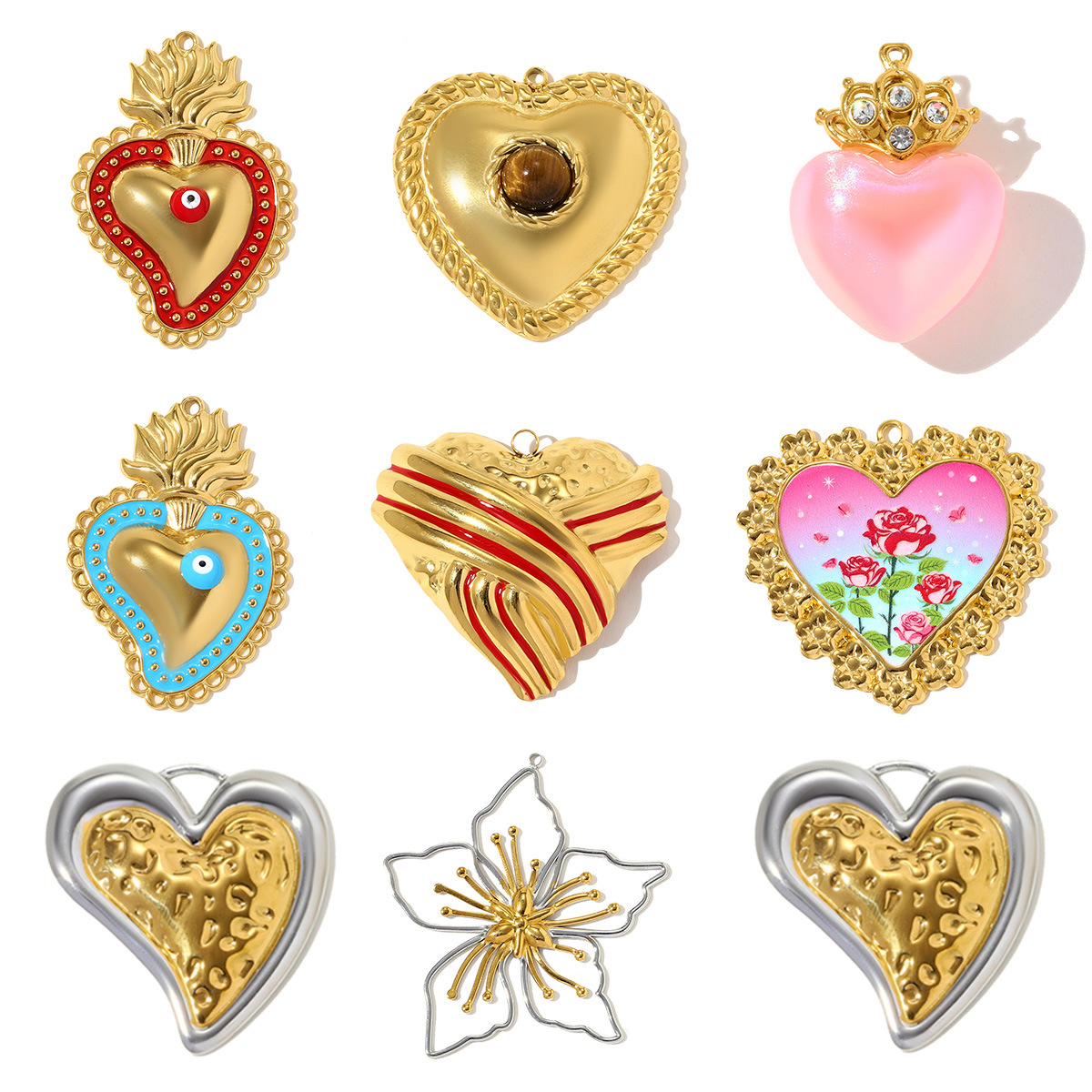 Rustfrit stål Heart Vedhæng, 304 rustfrit stål, med Ædelsten & Resin, forgyldt, du kan DIY & forskellige stilarter for valg & emalje & med rhinestone, 3pc'er/Bag, Solgt af Bag