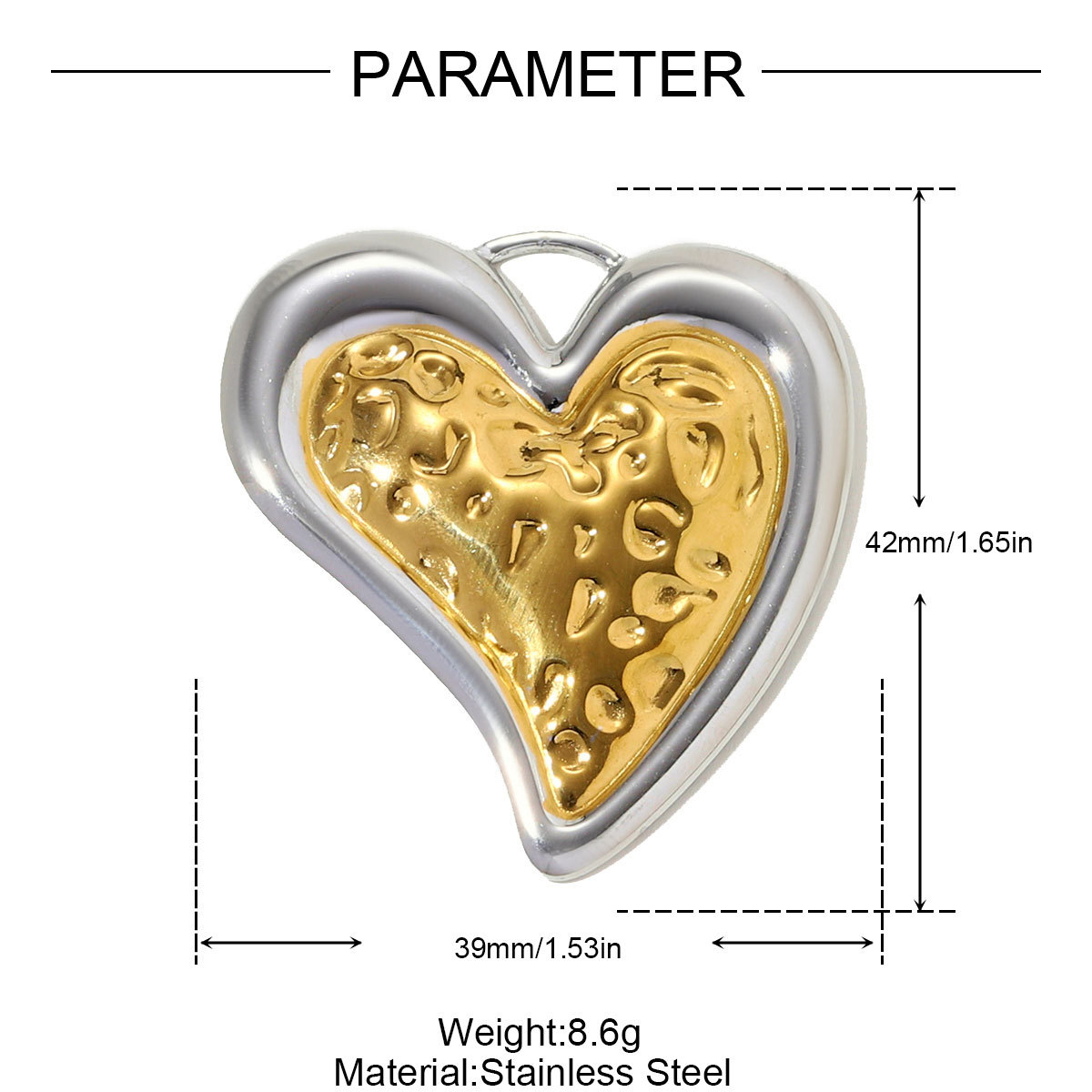 Rustfrit stål Heart Vedhæng, 304 rustfrit stål, guldfarve belagt, du kan DIY, gylden, 10pc'er/Bag, Solgt af Bag