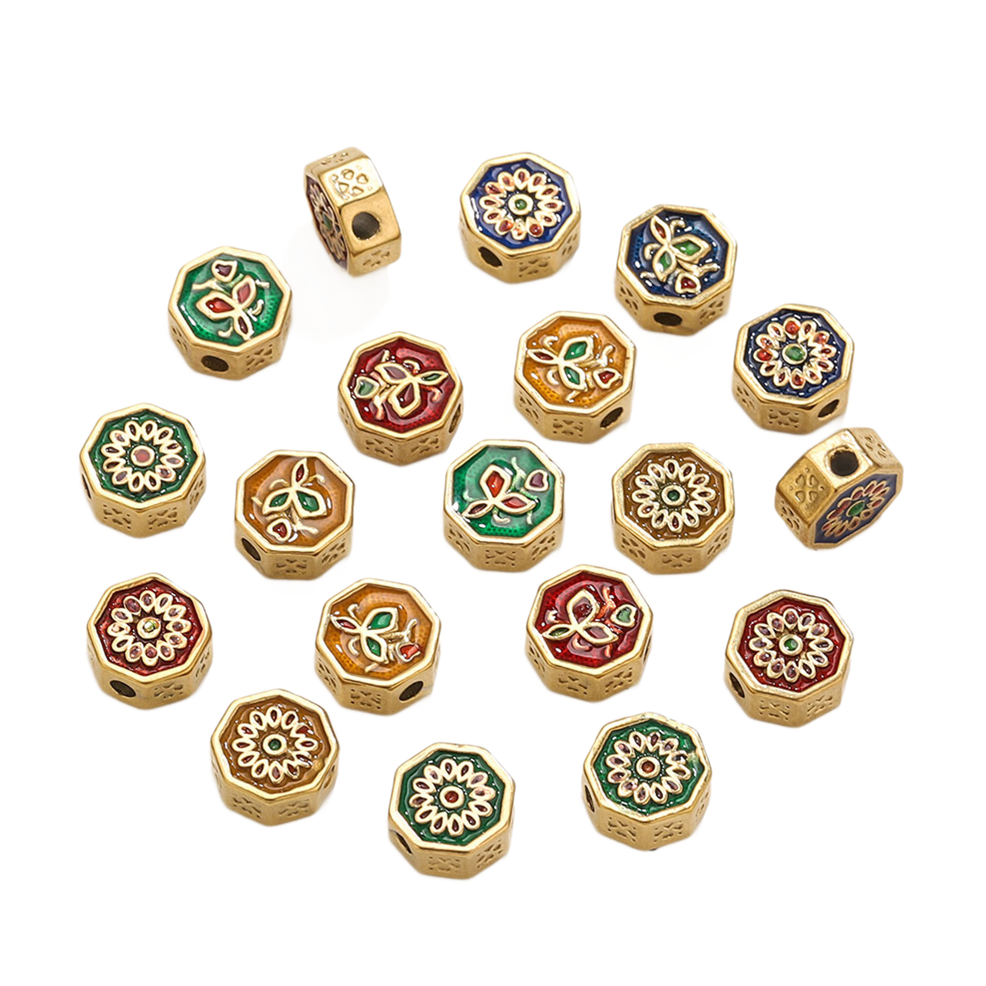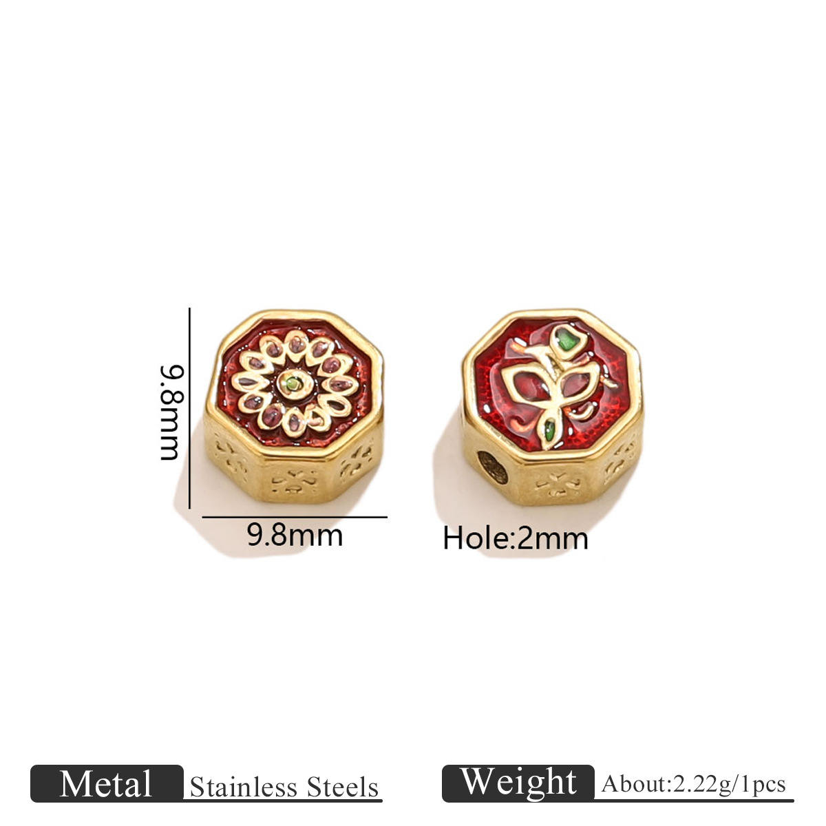 Rustfrit stål Spacer Perler, 304 rustfrit stål, Geometrisk mønster, guldfarve belagt, du kan DIY & emalje, flere farver til valg, 9.80x9.80mm, Hole:Ca. 2mm, Solgt af PC