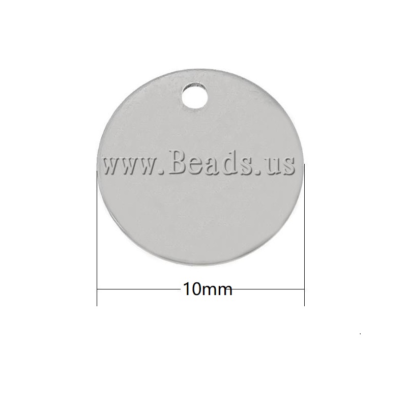 Rustfrit stål Tag Charm, 304 rustfrit stål, Flad Rund, oprindelige farve, 10x1mm, Hole:Ca. 1.2mm, Solgt af PC
