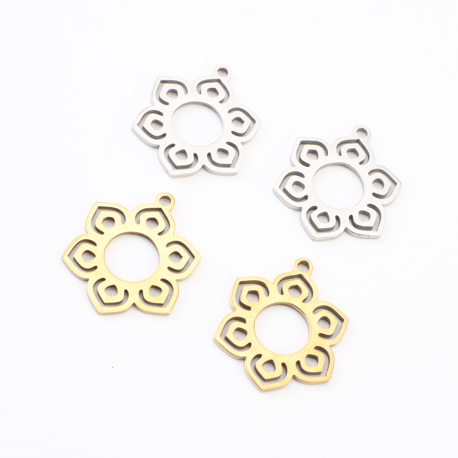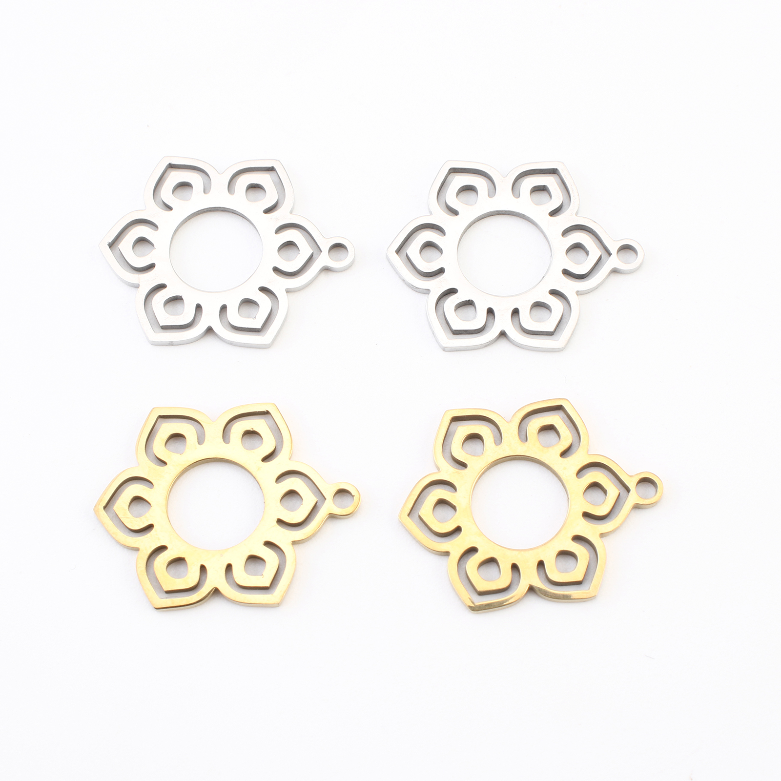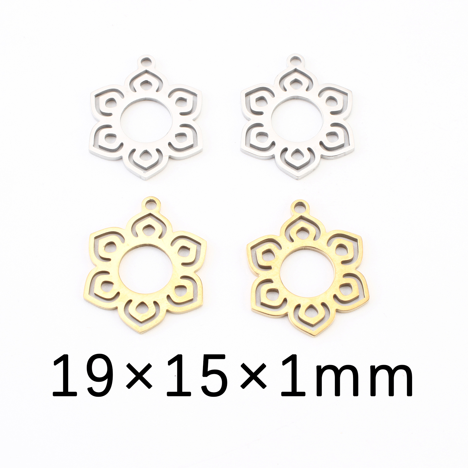 Rustfrit stål blomst vedhæng, 304 rustfrit stål, Flower, forgyldt, du kan DIY & hule, flere farver til valg, 19x15x1mm, 20pc'er/Lot, Solgt af Lot