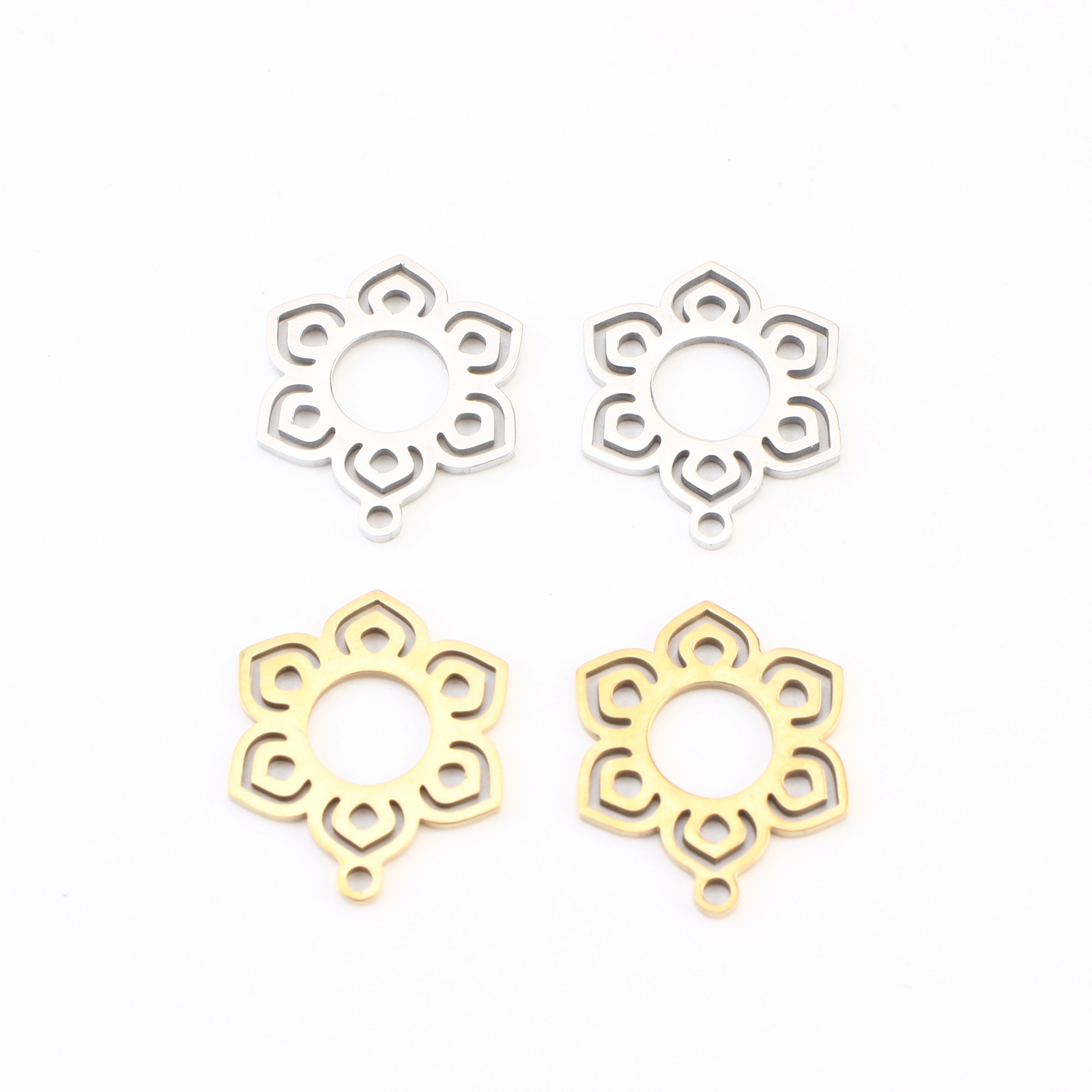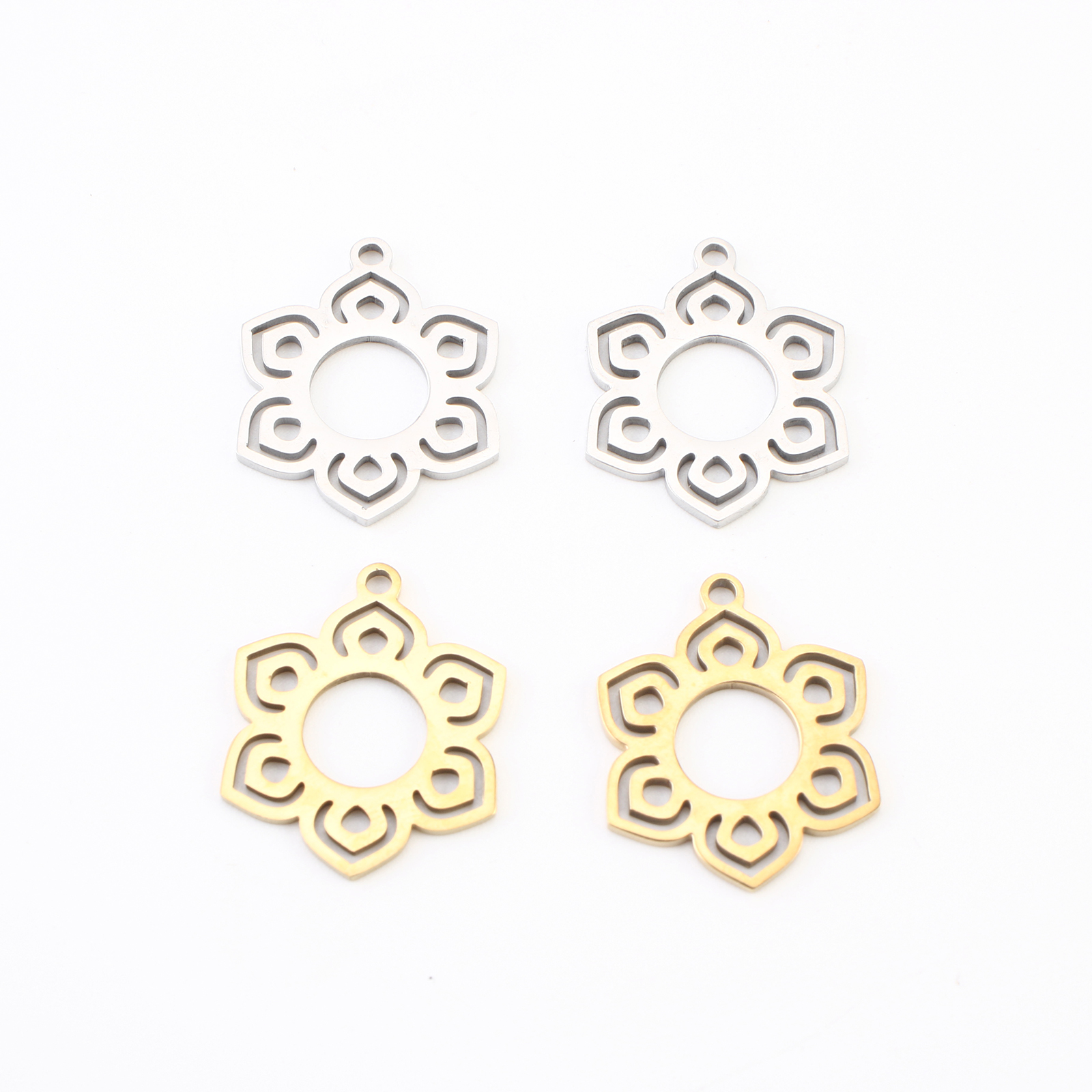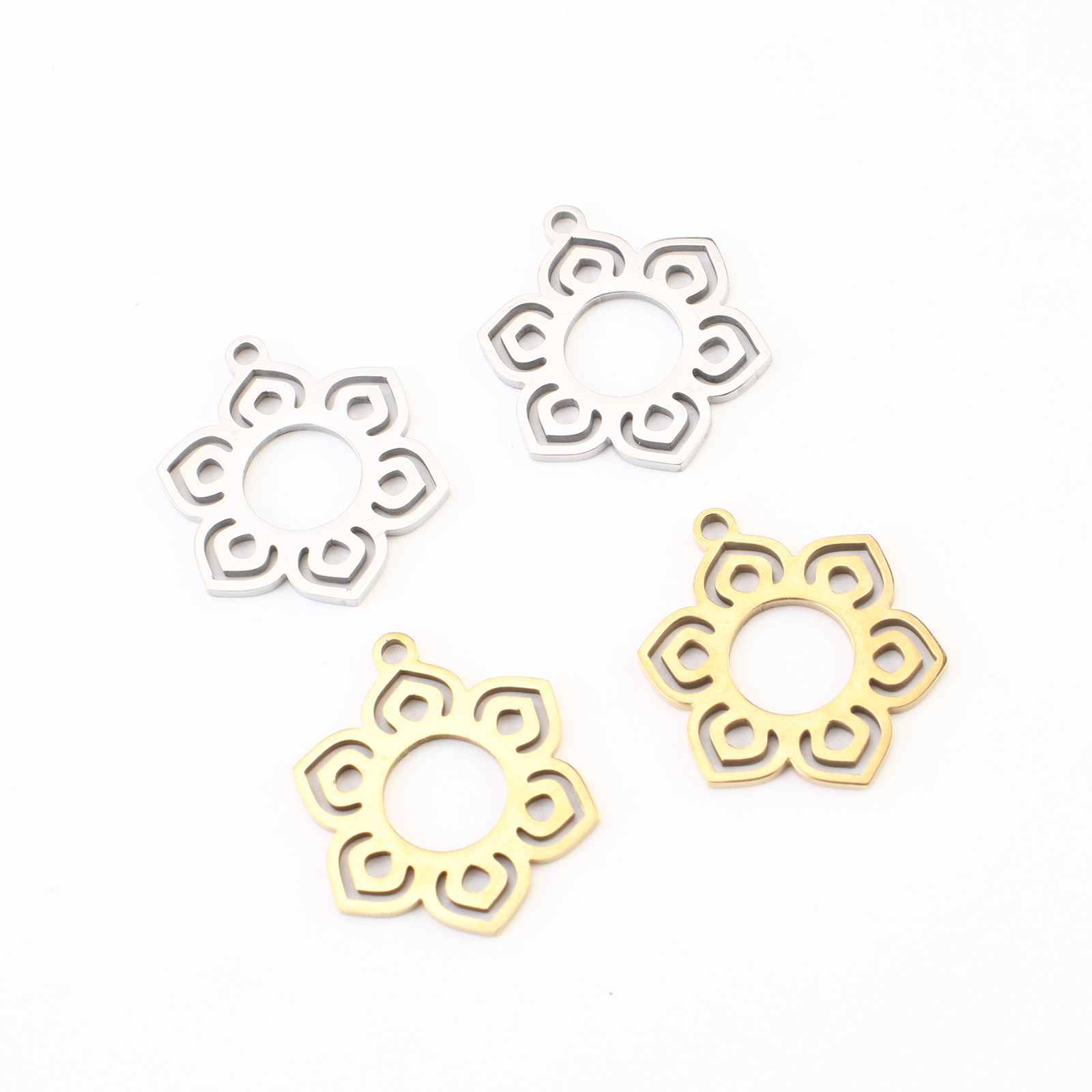 Rustfrit stål blomst vedhæng, 304 rustfrit stål, Flower, forgyldt, du kan DIY & hule, flere farver til valg, 19x15x1mm, 20pc'er/Lot, Solgt af Lot