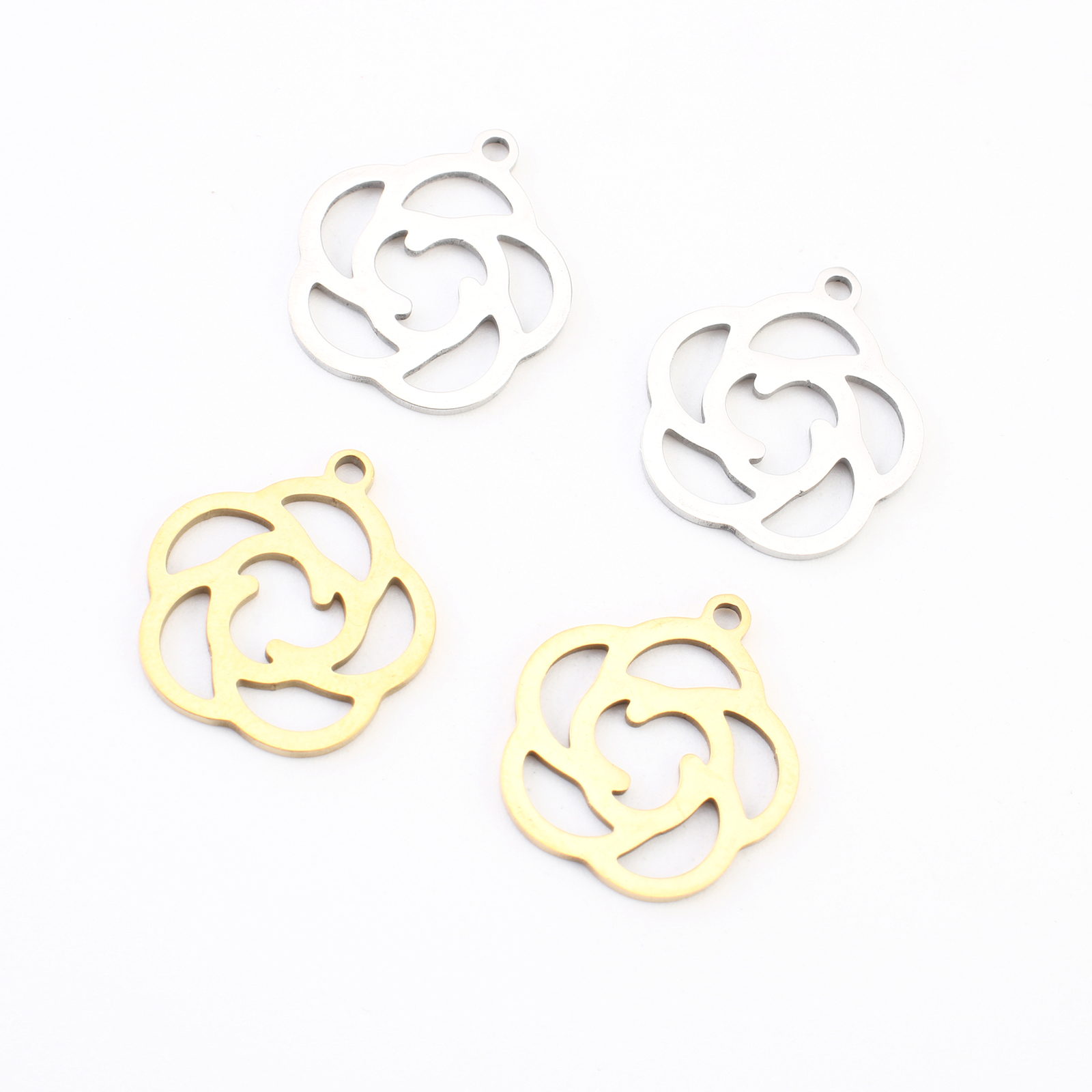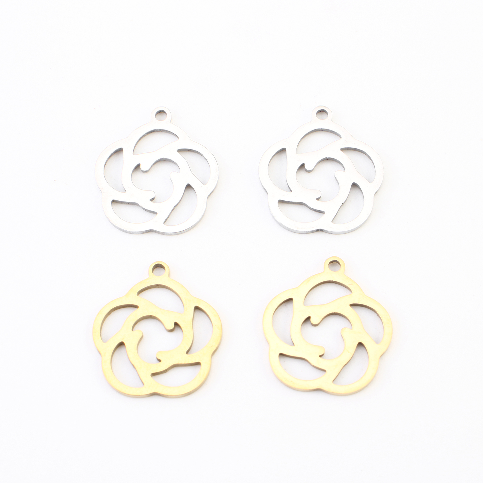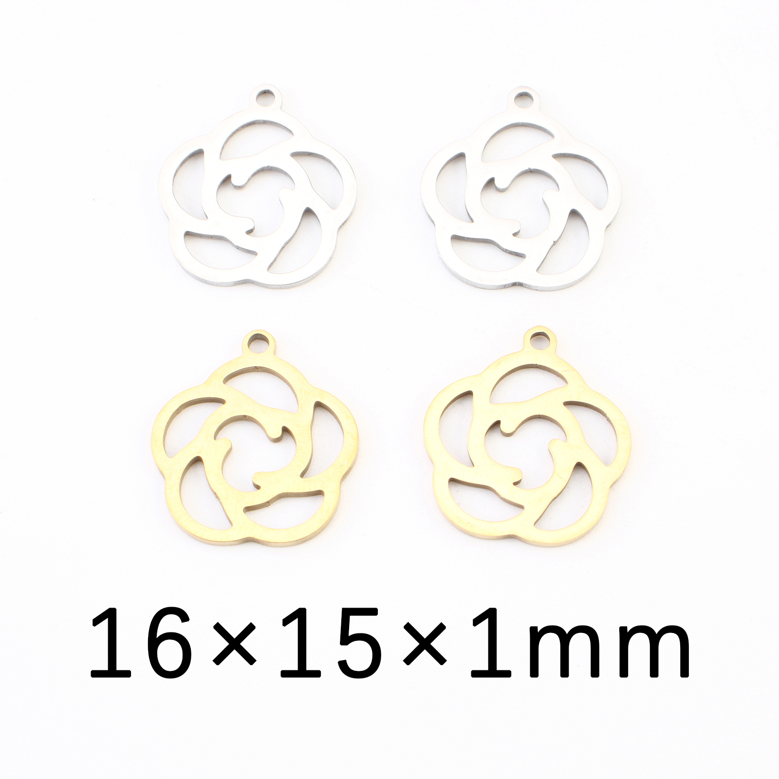 Rustfrit stål blomst vedhæng, 304 rustfrit stål, Rose, forgyldt, du kan DIY & forskellig størrelse for valg, flere farver til valg, Solgt af PC