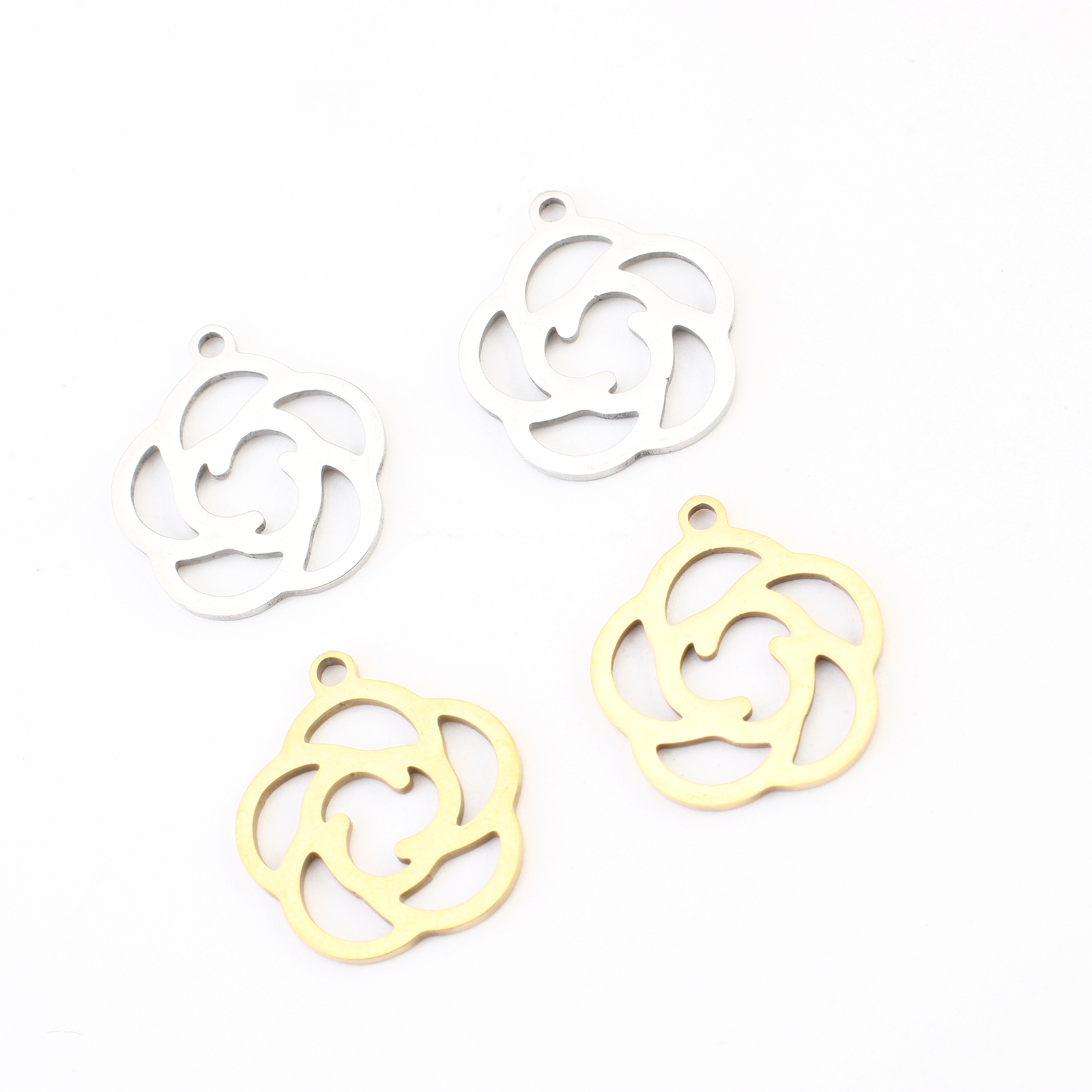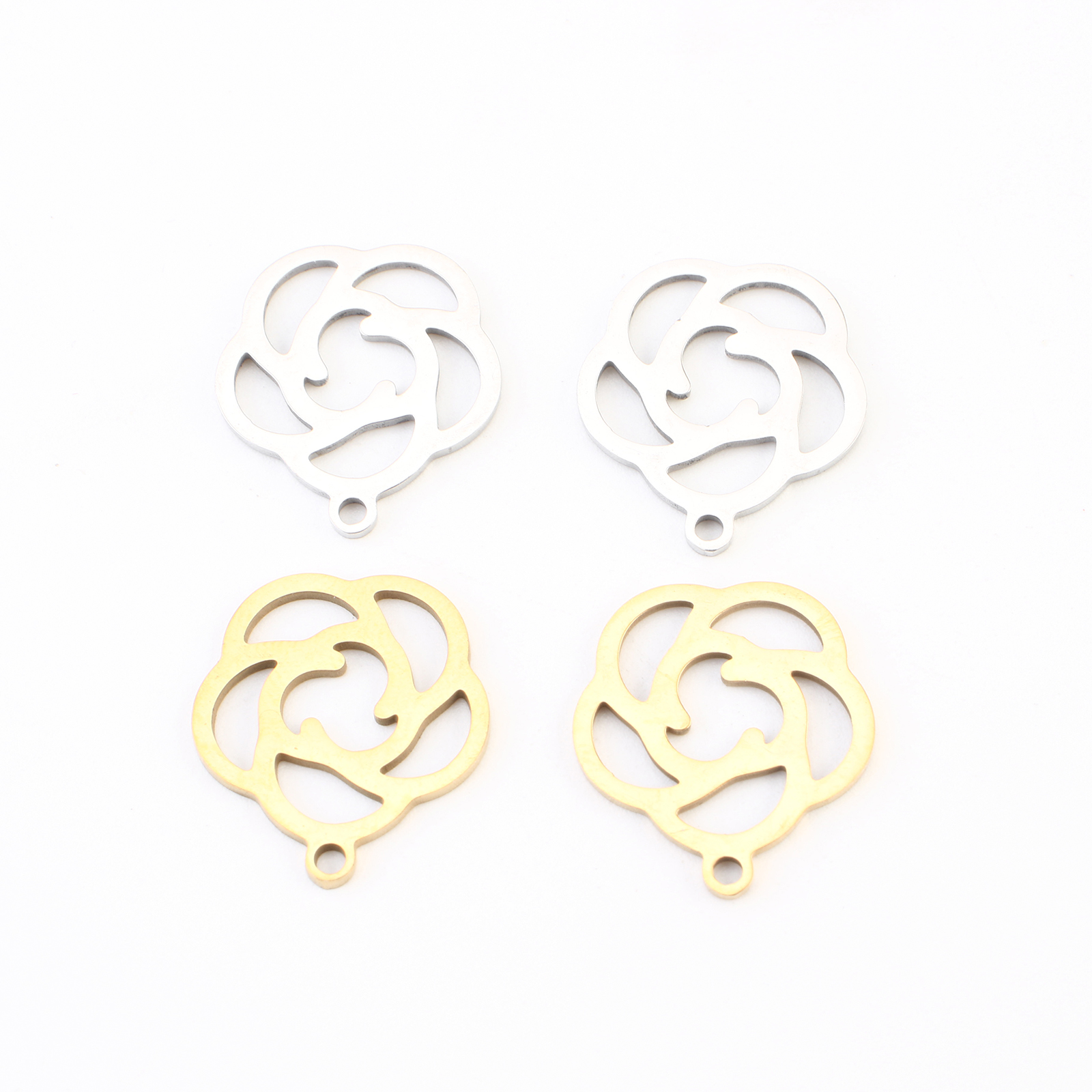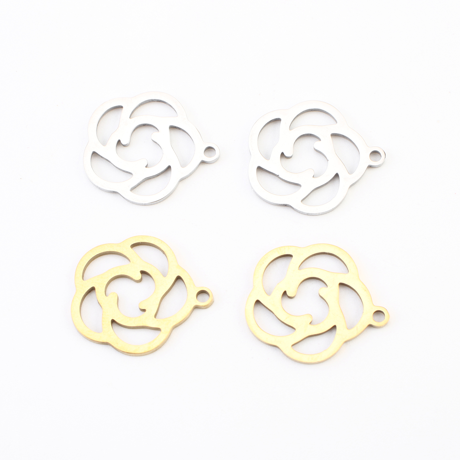Rustfrit stål blomst vedhæng, 304 rustfrit stål, Rose, forgyldt, du kan DIY & forskellig størrelse for valg, flere farver til valg, Solgt af PC