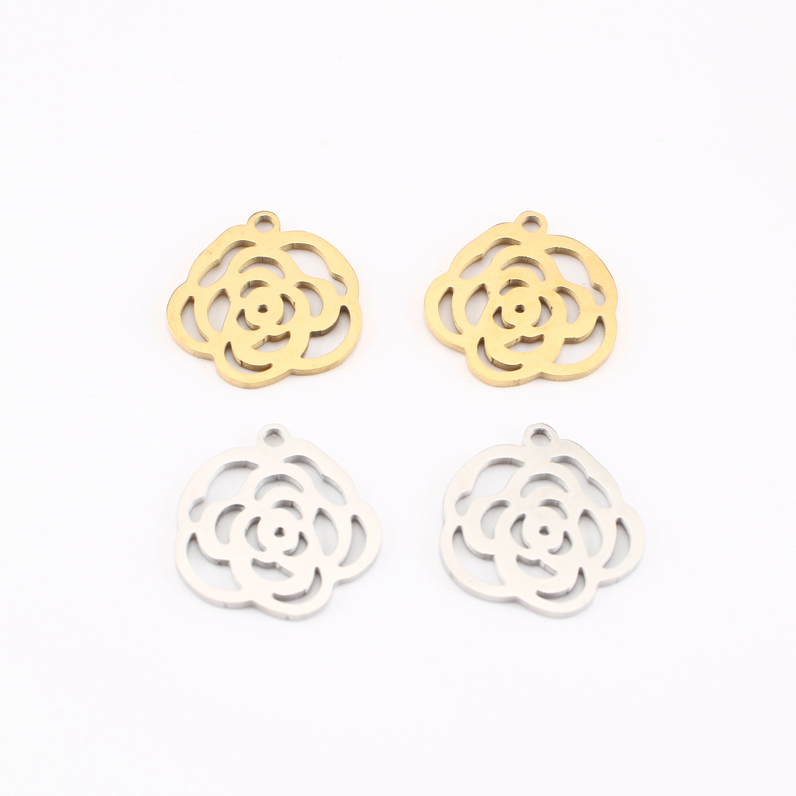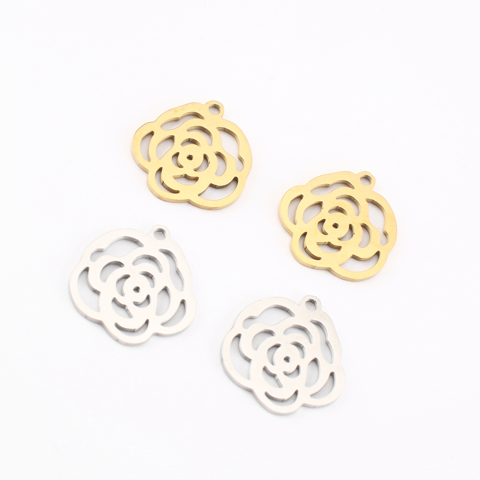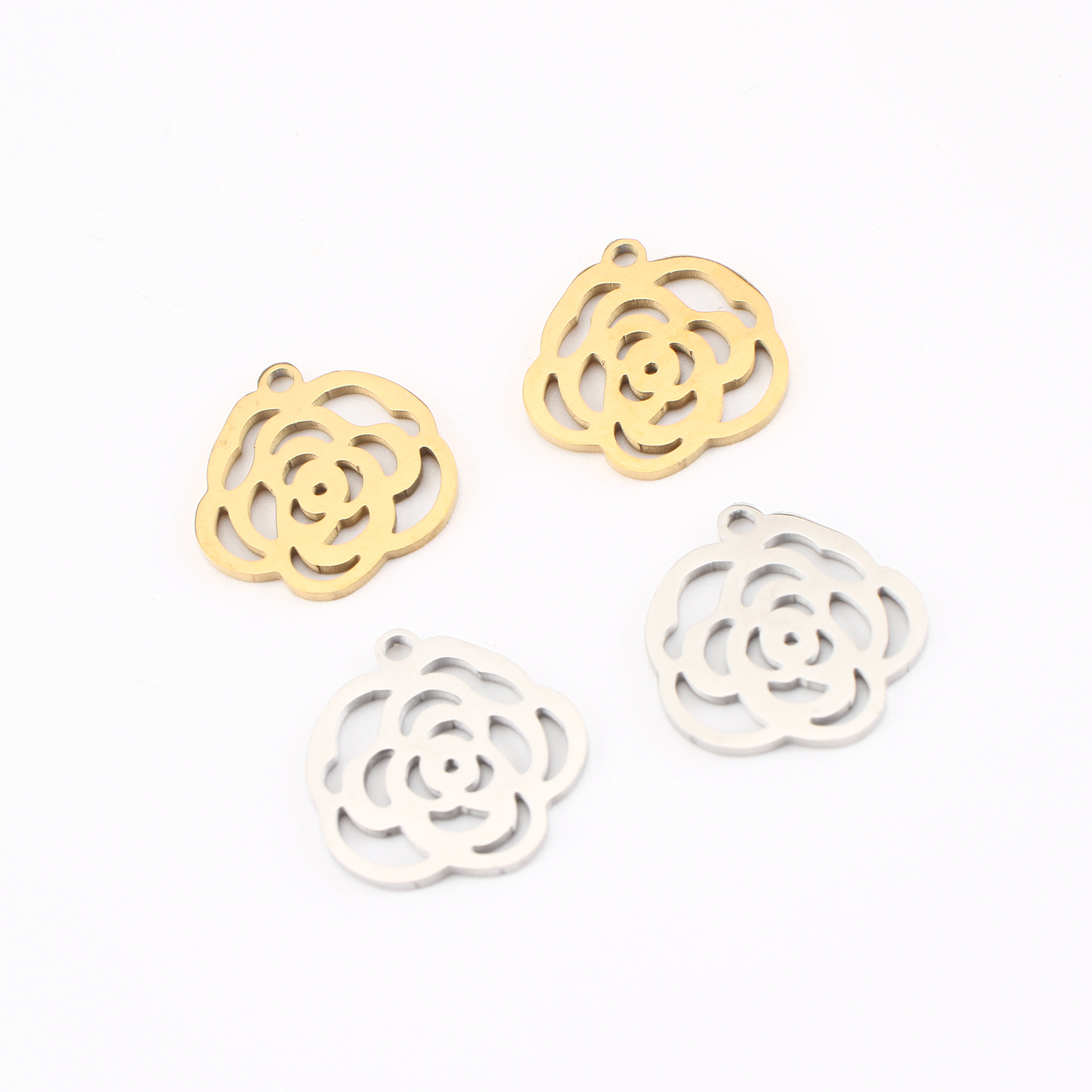 Rustfrit stål blomst vedhæng, 304 rustfrit stål, Rose, forgyldt, du kan DIY & forskellig størrelse for valg, flere farver til valg, Solgt af PC