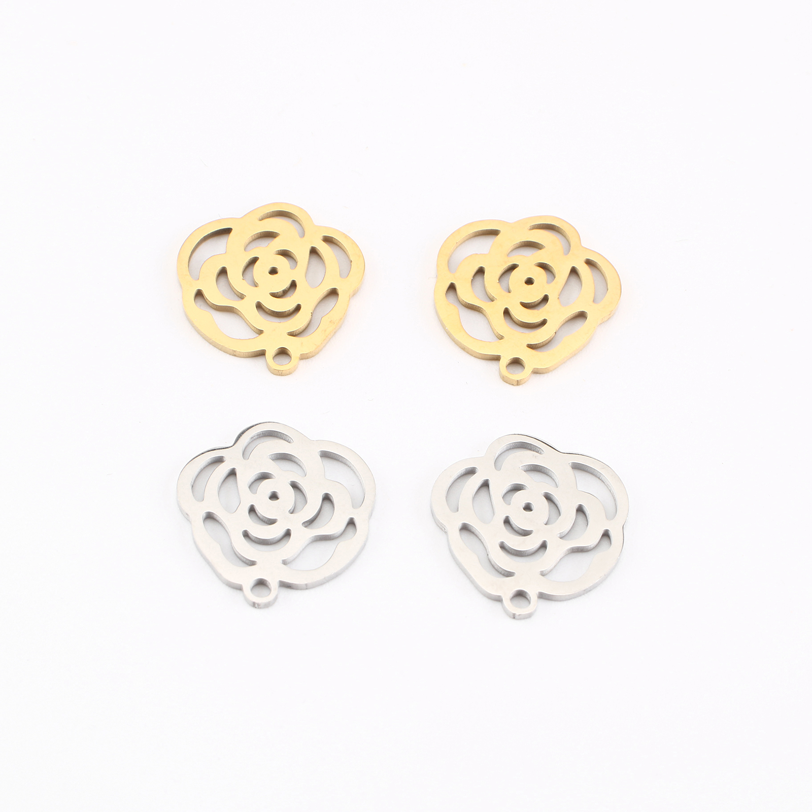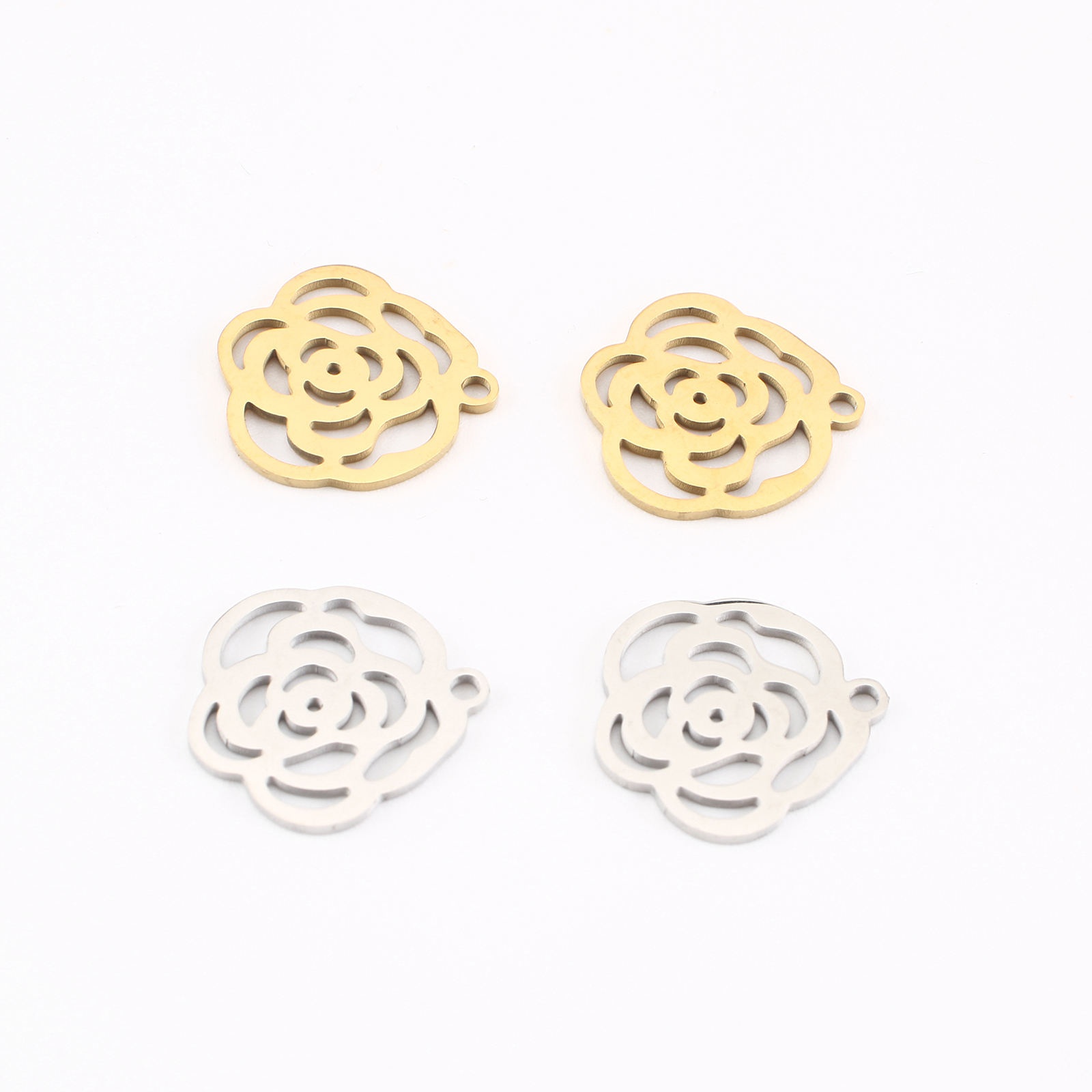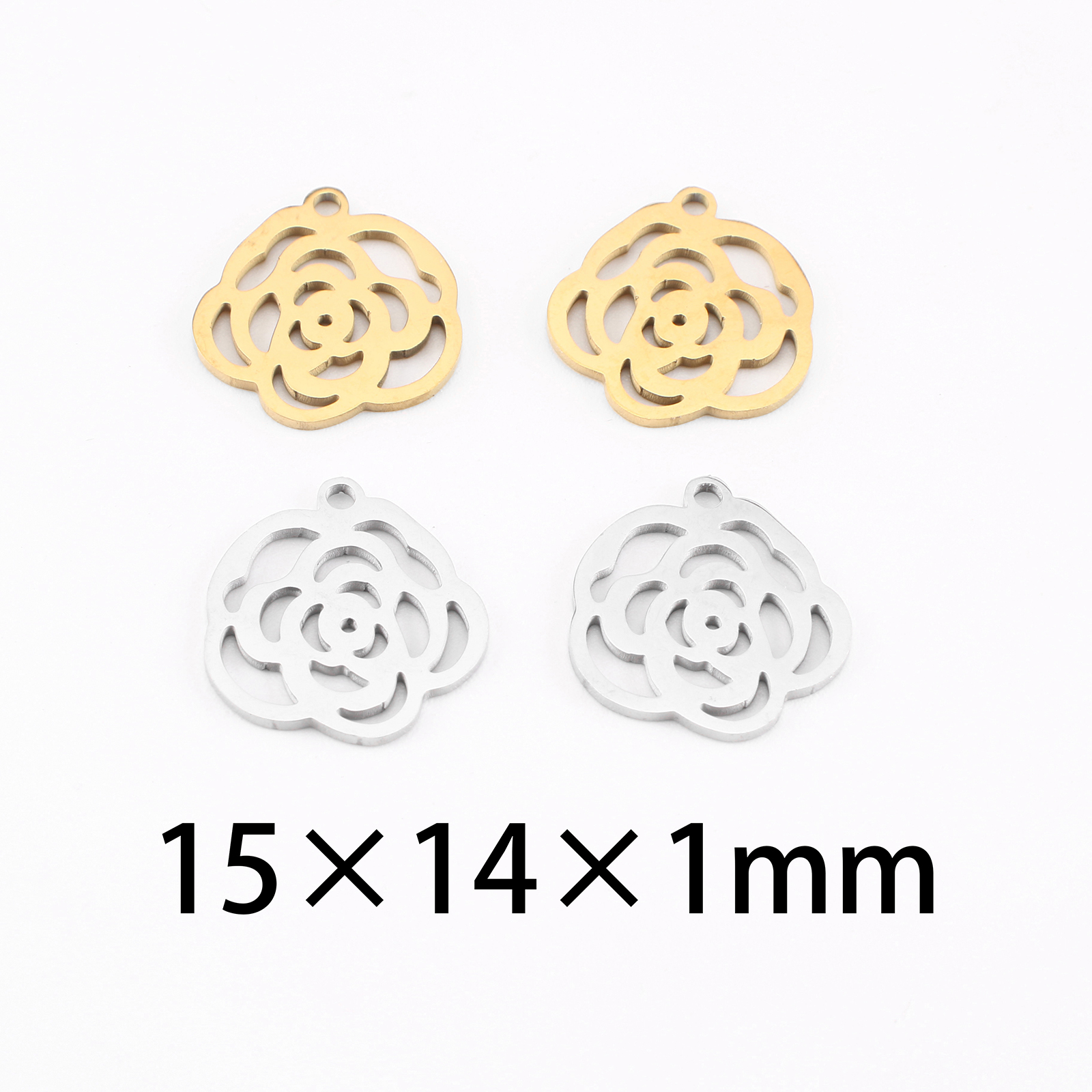 Rustfrit stål blomst vedhæng, 304 rustfrit stål, Rose, forgyldt, du kan DIY & forskellig størrelse for valg, flere farver til valg, Solgt af PC