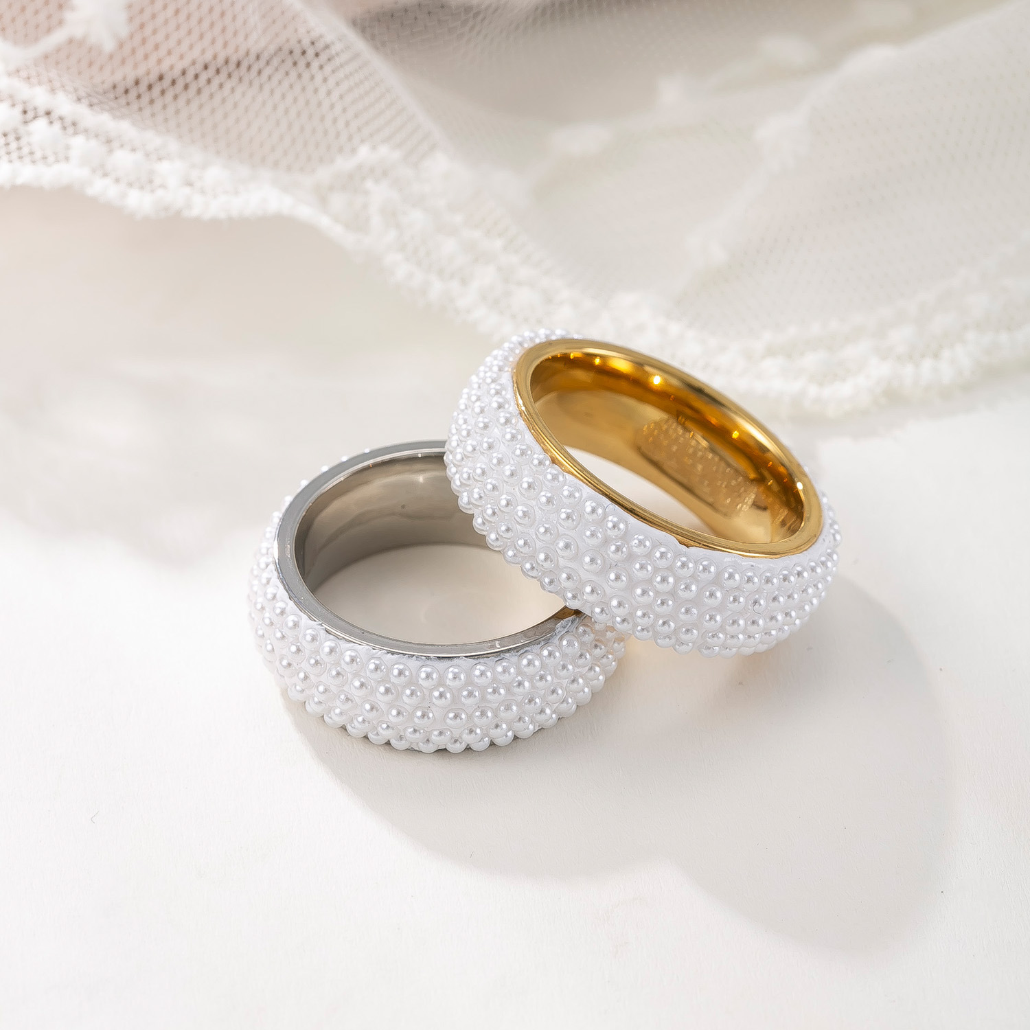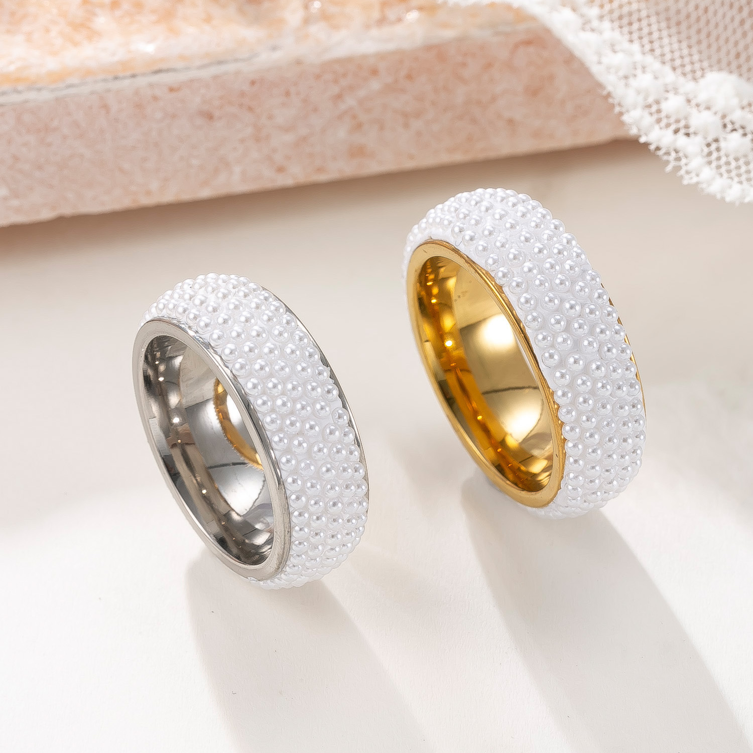 Rustfrit stål fingre Ringe, 304 rustfrit stål, med Plastic Pearl, forgyldt, mode smykker & forskellig størrelse for valg & for kvinde, flere farver til valg, Solgt af PC