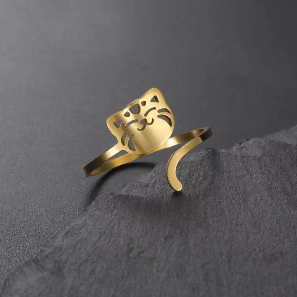 304 rustfrit stål Cuff fingerring, mode smykker & for kvinde, gylden, Inner diameter: 18mm, Solgt af PC