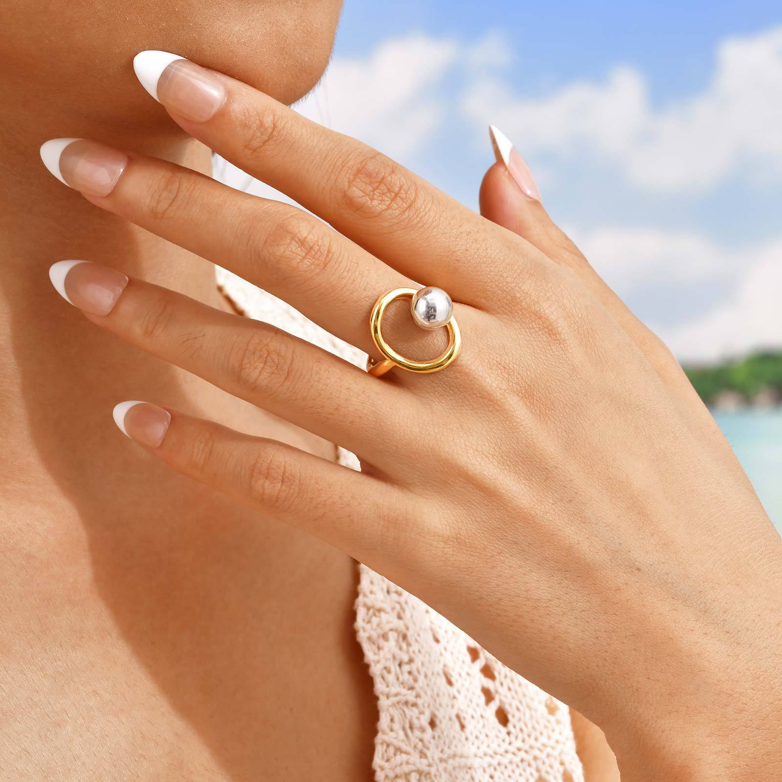 Rustfrit stål fingre Ringe, 304 rustfrit stål, forgyldt, forskellige stilarter for valg & for kvinde & to tone, Solgt af PC