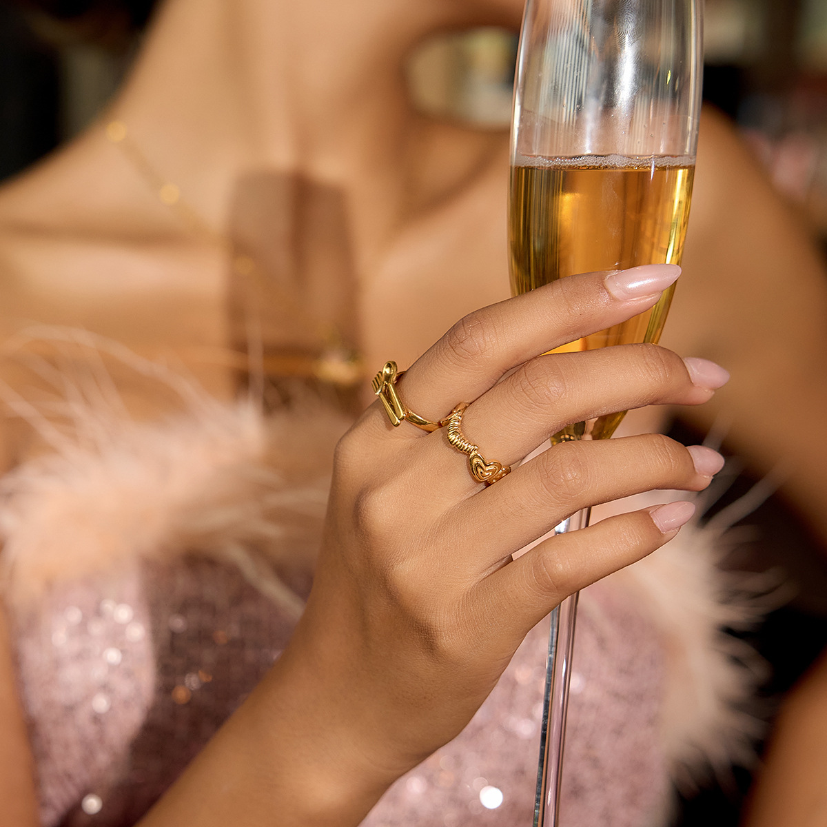 Rustfrit stål fingre Ringe, 304 rustfrit stål, 18K forgyldt, forskellige stilarter for valg & for kvinde & hule, Solgt af PC