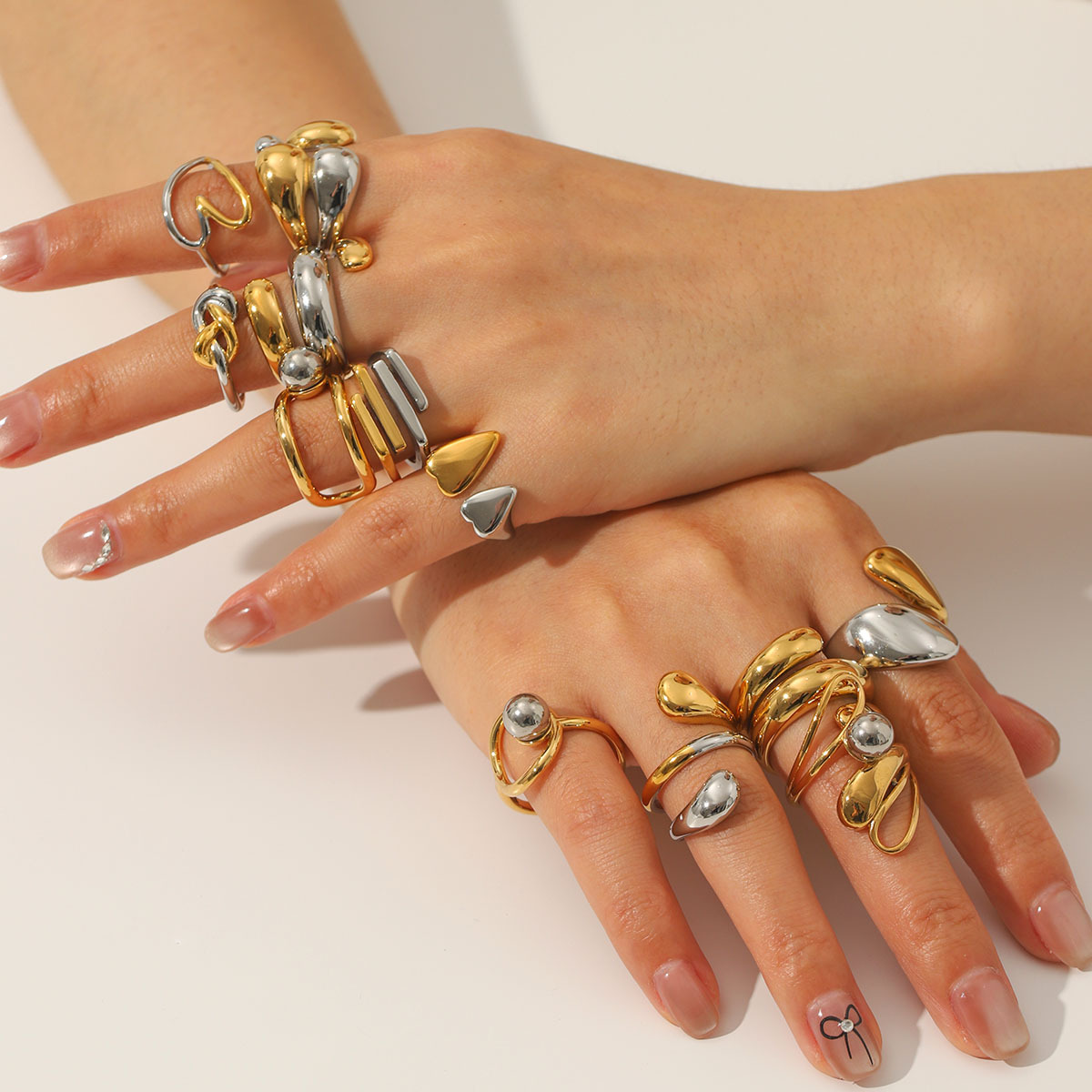 Rustfrit stål fingre Ringe, 304 rustfrit stål, forgyldt, Unisex & forskellige stilarter for valg, flere farver til valg, Solgt af PC