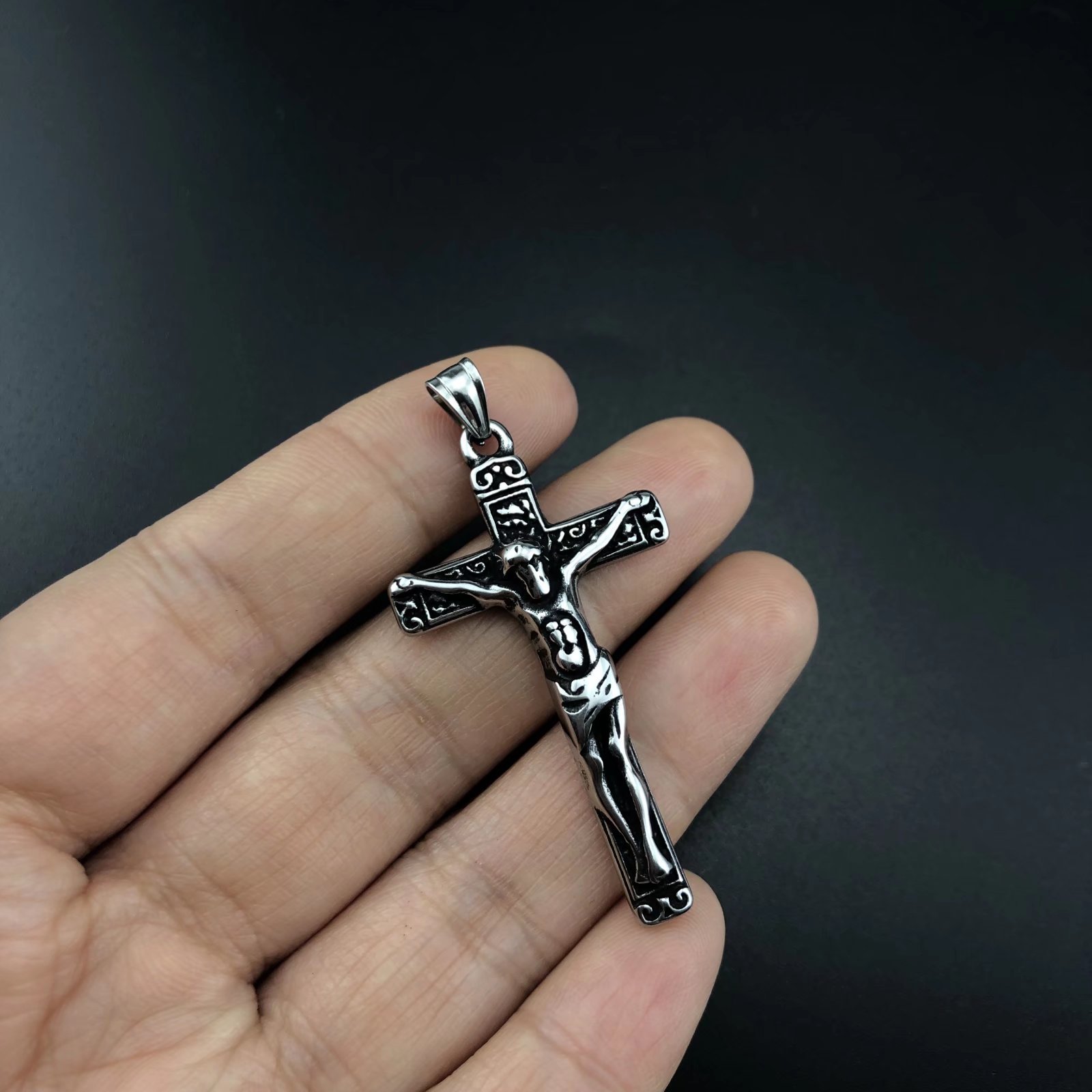 Rustfrit stål kors vedhæng, 304 rustfrit stål, Kryds, du kan DIY, oprindelige farve, 26.40x48x5.80mm, Solgt af PC
