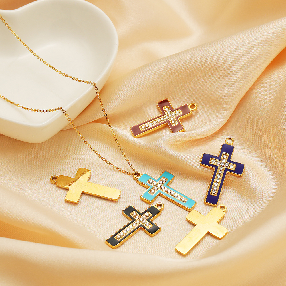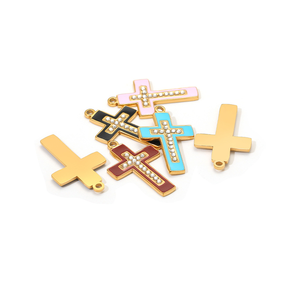 Rustfrit stål kors vedhæng, 304 rustfrit stål, Kryds, forgyldt, du kan DIY, flere farver til valg, Solgt af PC