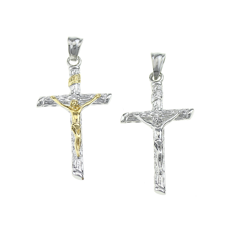 Rustfrit stål kors vedhæng, 304 rustfrit stål, Krucifiks Cross, forgyldt, du kan DIY, flere farver til valg, 22x41x5mm, Hole:Ca. 3x6mm, Solgt af PC